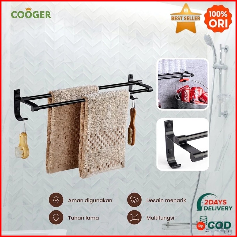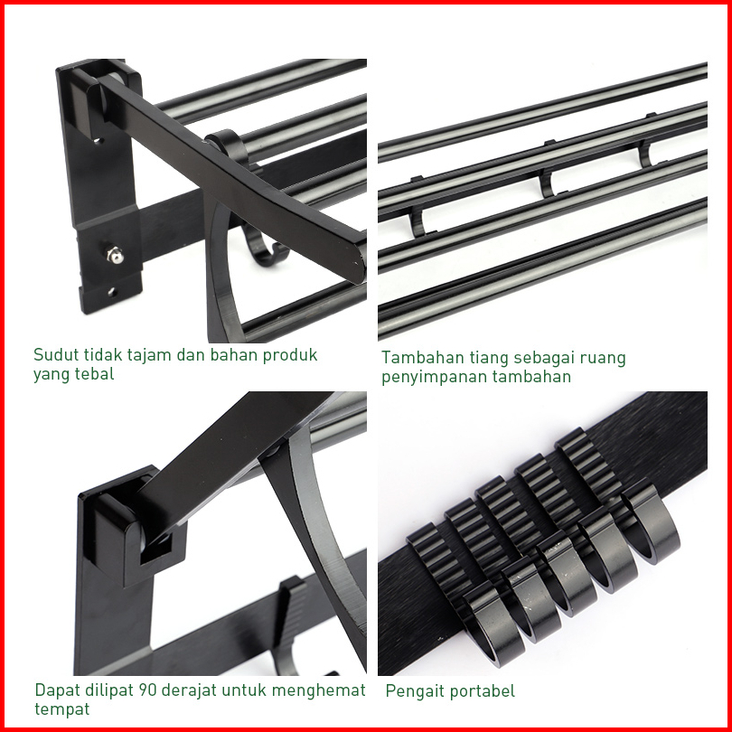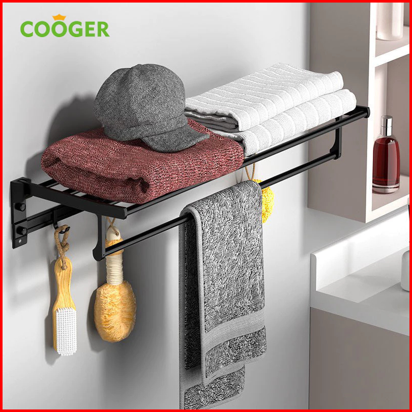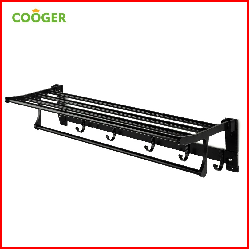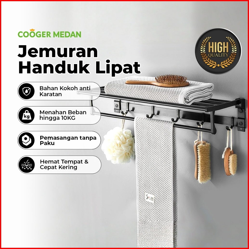 Cooger Medan Rak Handuk Kamar Mandi Gantungan Dinding Dapur Lipat Dengan Pengait Alumunium Rack