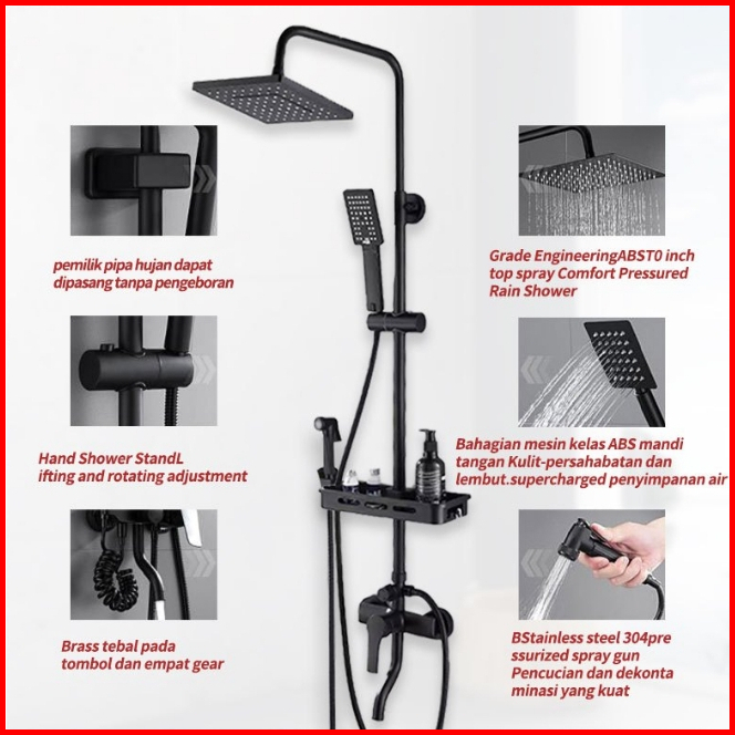 Lenodi Shower 1 Set Panas-dingin Shower Kamar Mandi Set 4 In 1 Dengan Faucet Sower Satu Set Tembaga Lengkap Stand Keran