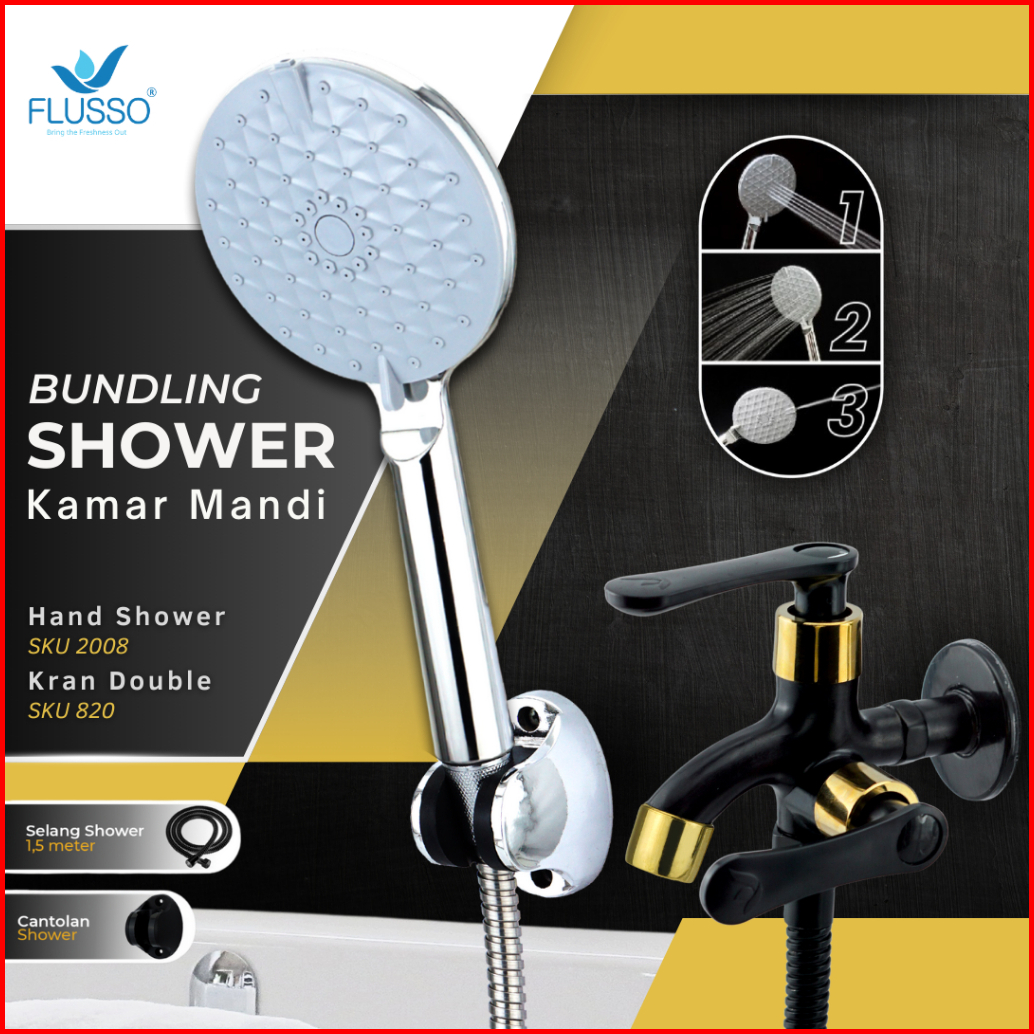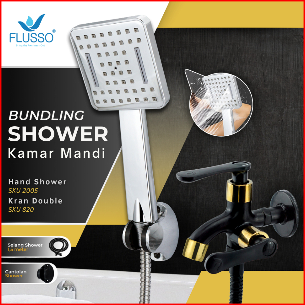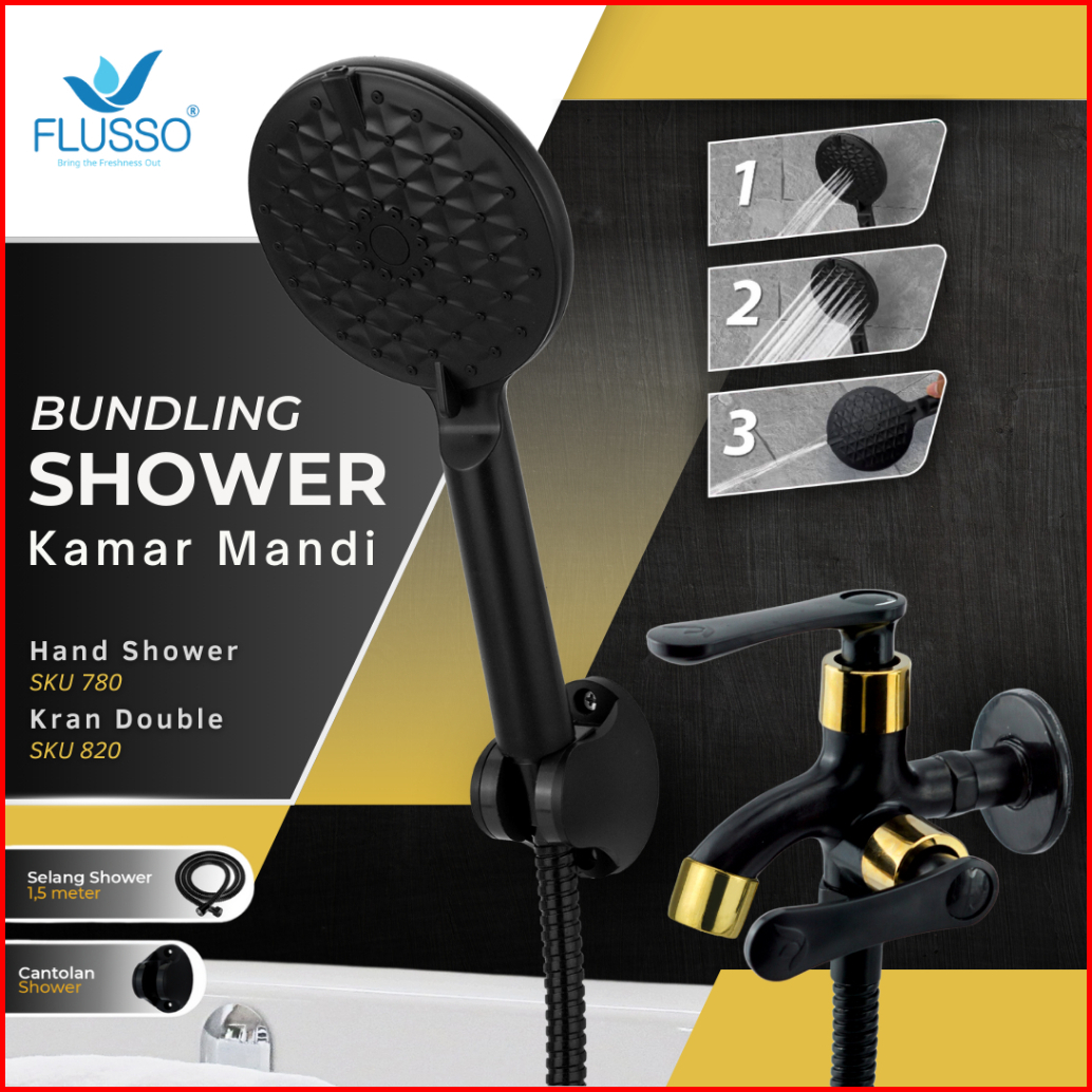 Flusso Paket Hemat Shower Set Komplit Kran Double Shower Black Kuningan Original 820