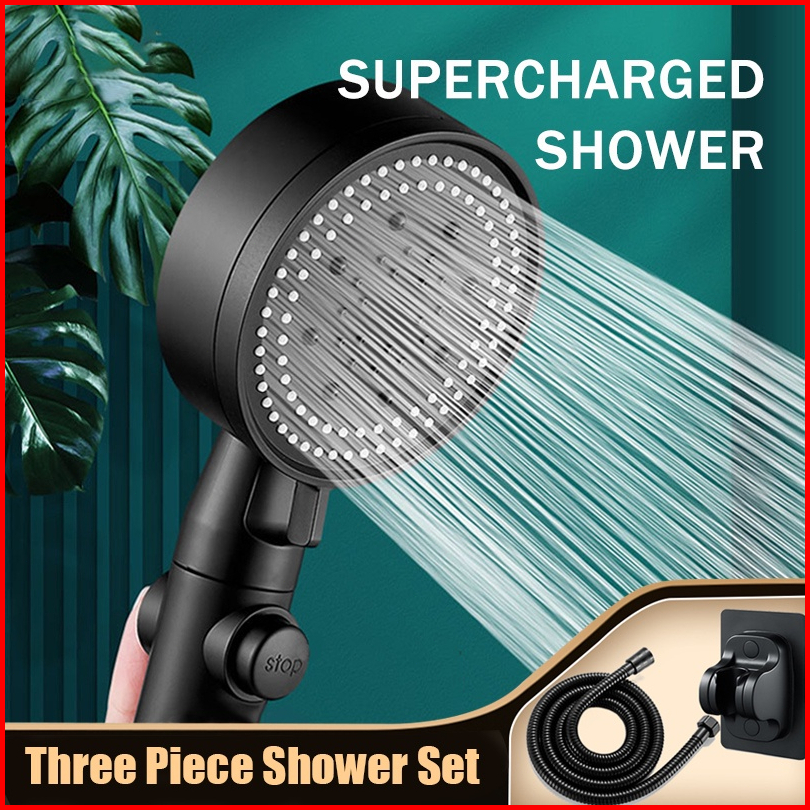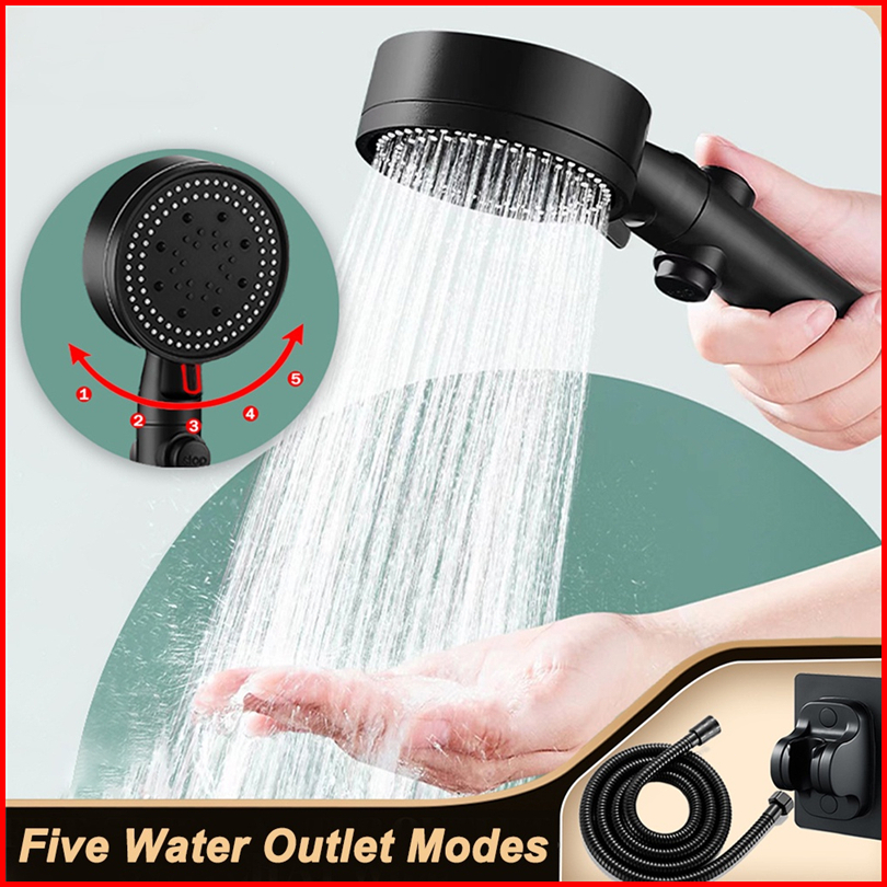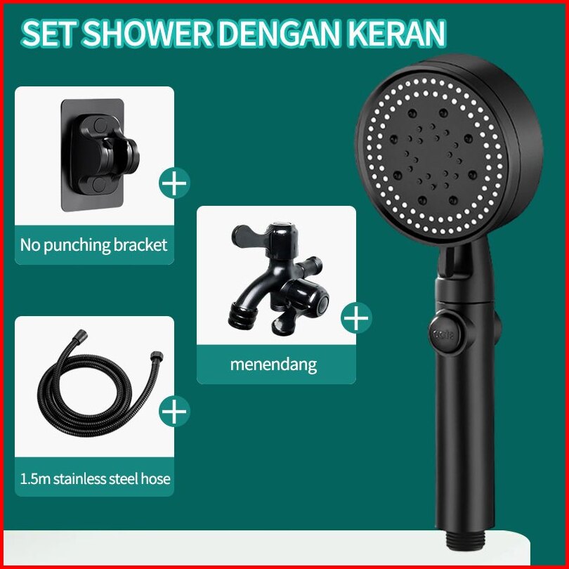 Hitam Kepala Shower Set 3in 1 Dengan Selang Portable Kamar Mandi Shower 5 Mode Adjustable Shower Premium Pancuran Tangan