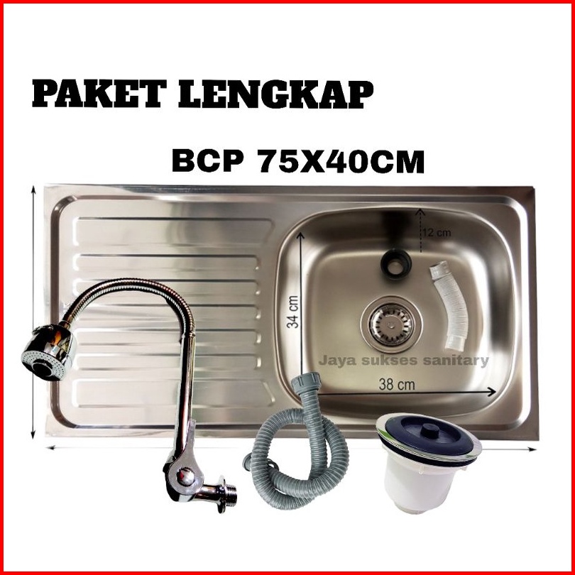 Bak Cuci Piring Wastafel Cuci Piring 75x40 Cm Bonus Selang Kran Flexible Stainless Drad 1 2