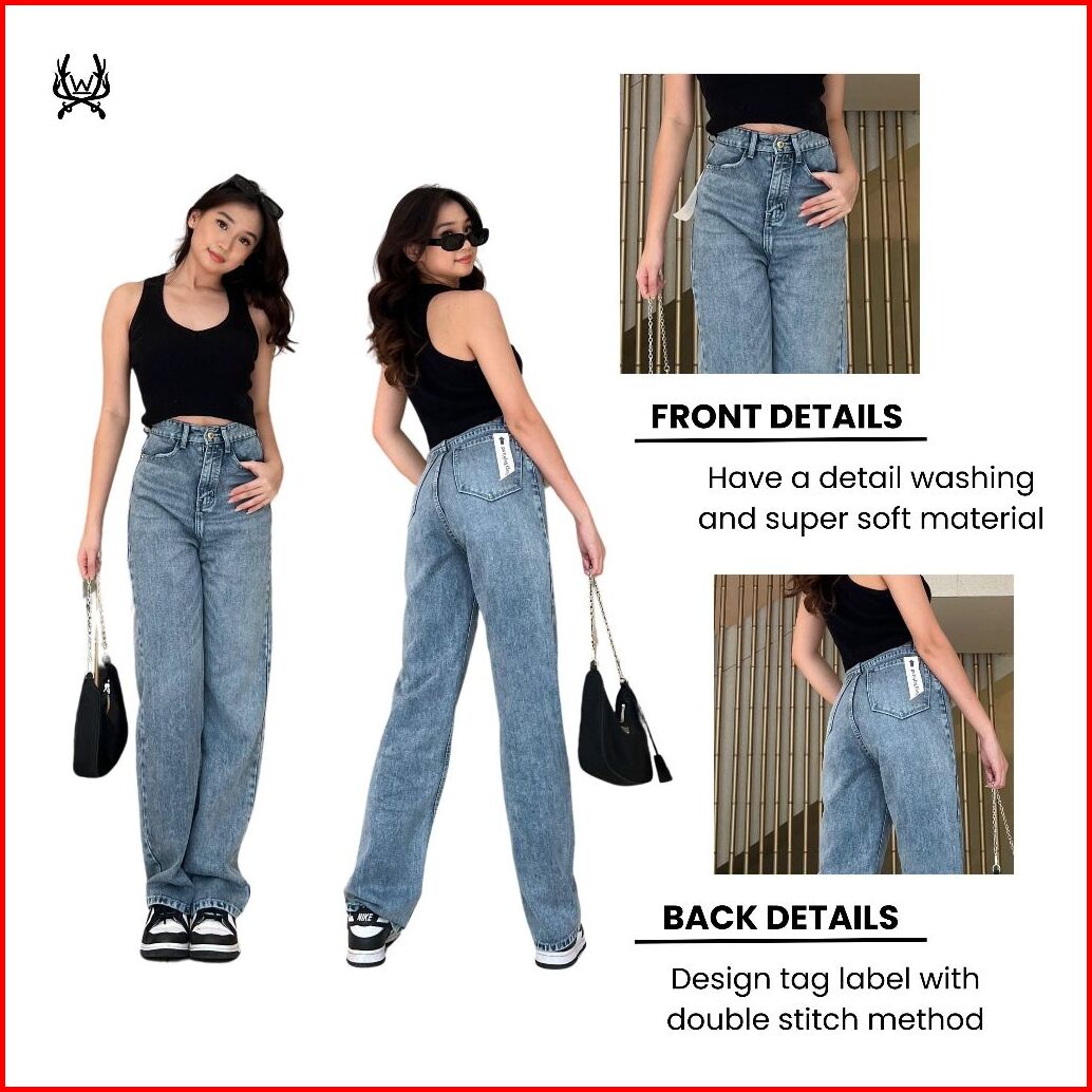 Warpath - Highwaist Loose Jeans Celana Jeans Straight Swaggy 8117 Celana Panjang Wanita Denim Non Stretch