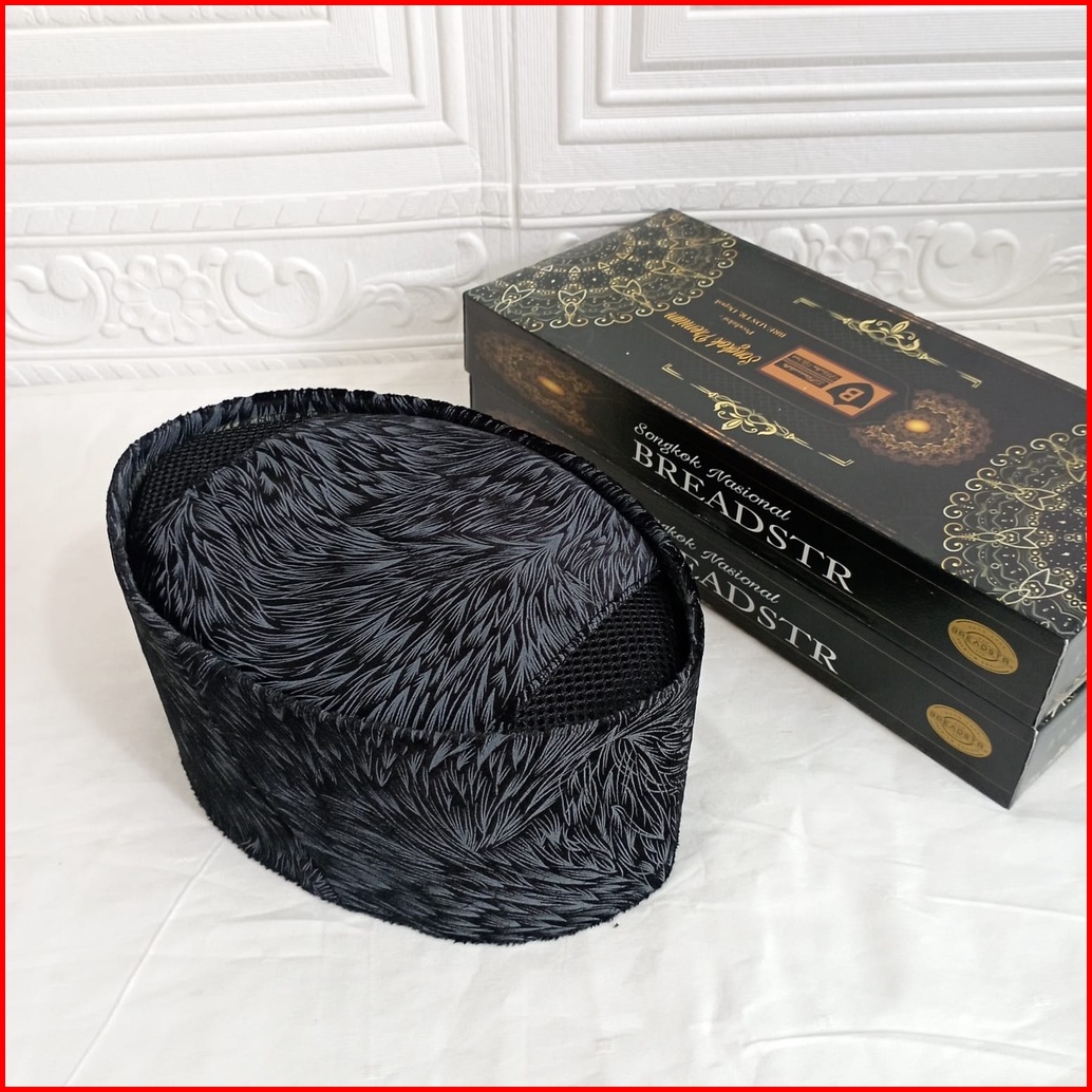 Peci Songkok Kopiah Terbaru Hitam Polos Ac Motif Merk Breadstr Tinggi 9cm Murah Berkualitas Bahan Lembut Dan Tebal - Pec