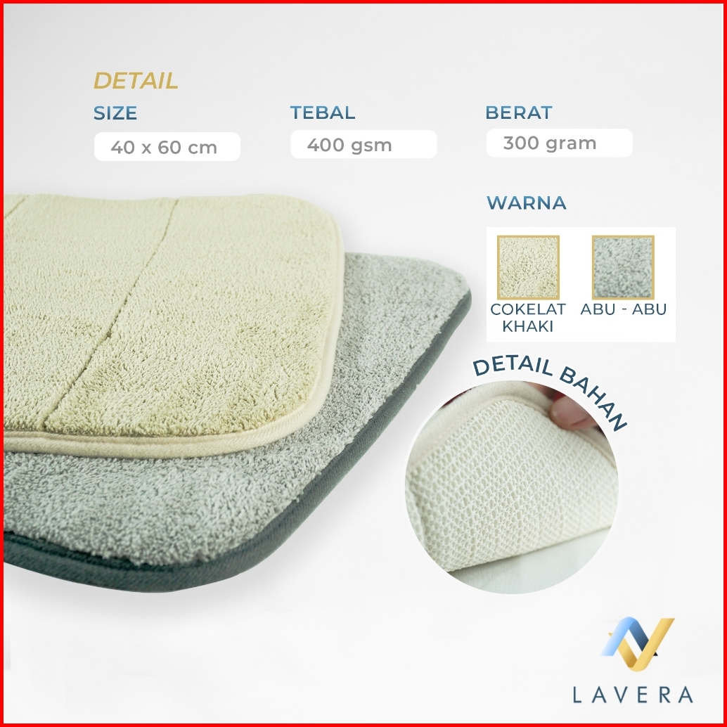 Premium Doormat Keset Microfiber Kamar Mandi Warna Khaki Anti Licin Slip Tebal Aesthetic Serap Air Cepat Kering 40x60 Cm