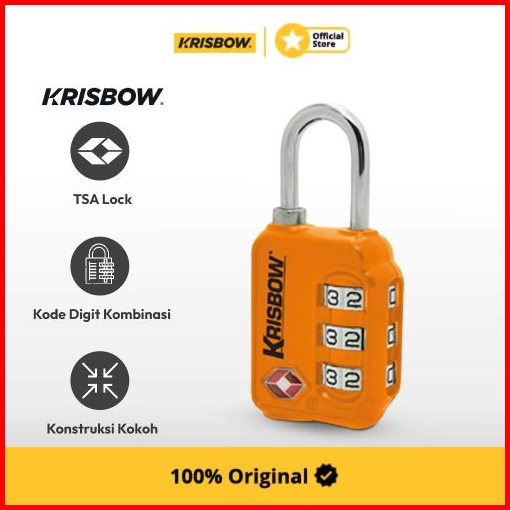 Krisbow Padlock Gembok Koper 3 Angka Zinc Alloy - Oranye