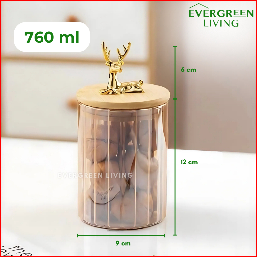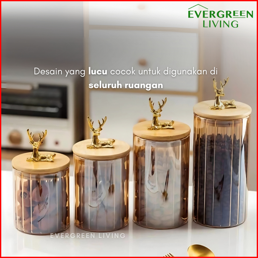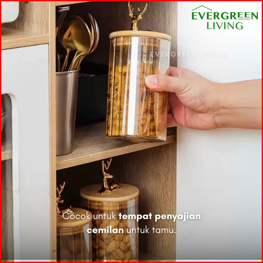 Evergreen Snack Jar Toples Rusa Kaca Transparan Tempat Penyimpanan Makanan Snack Kue Biscuit Permen Multifungsi Lucu Est