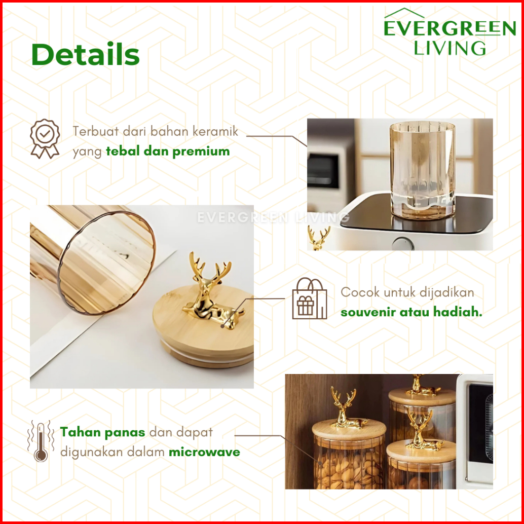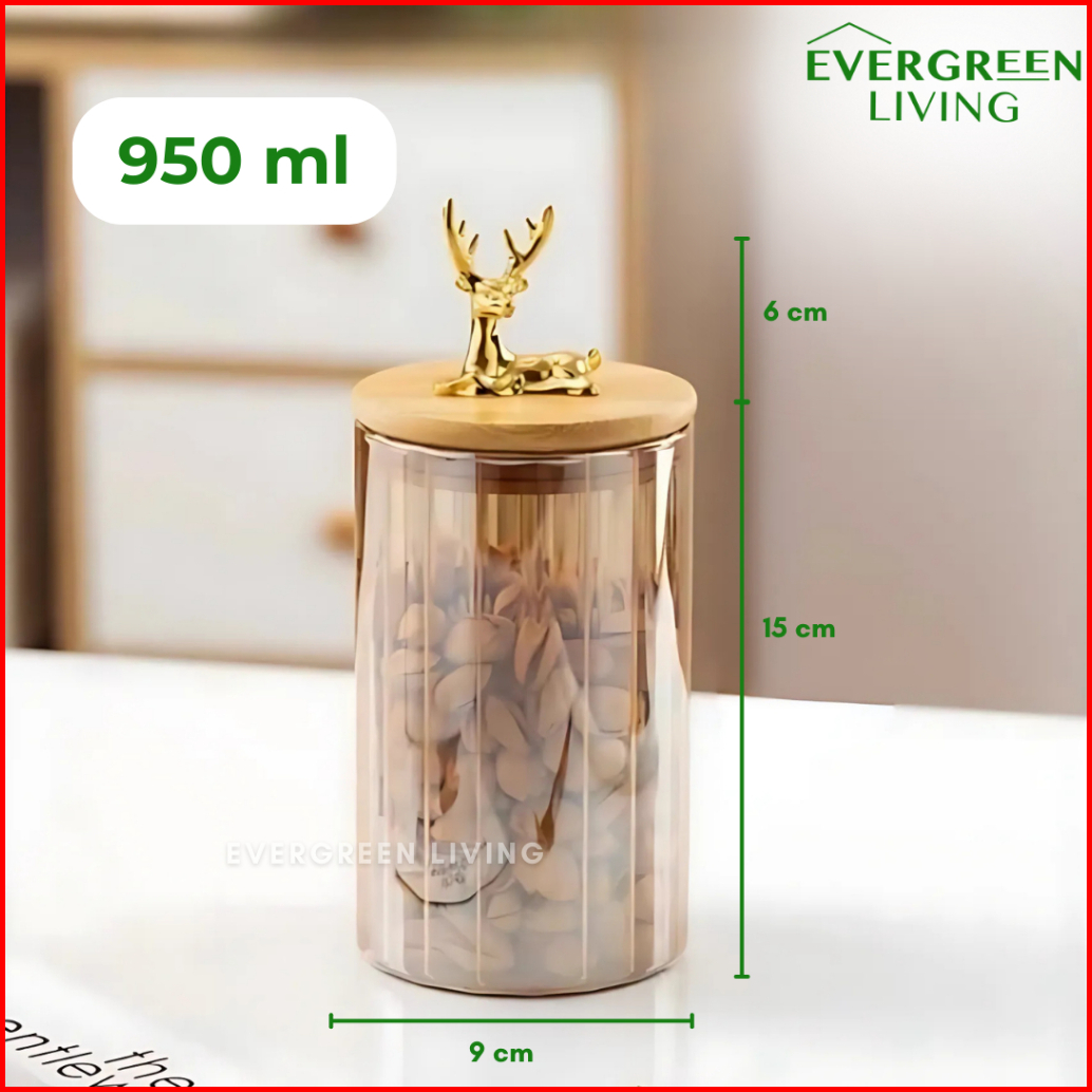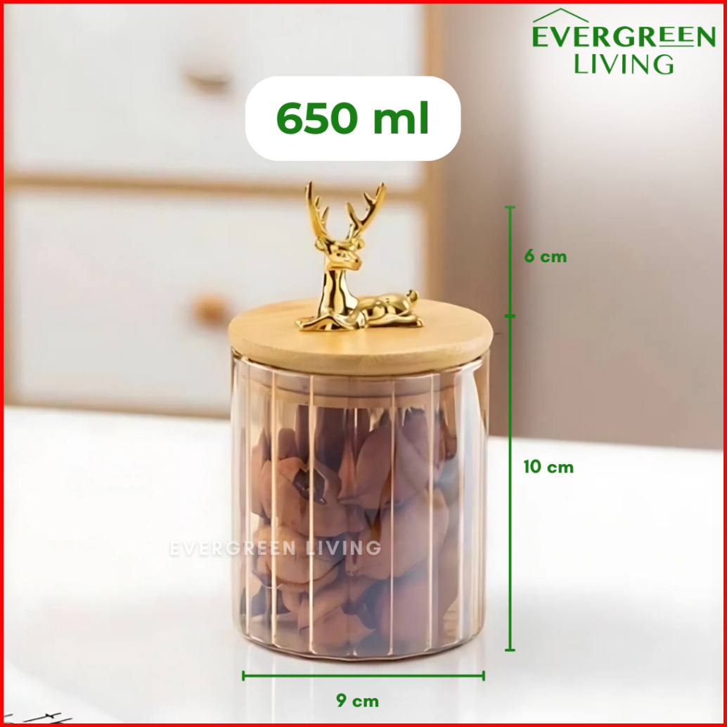 Evergreen Snack Jar Toples Rusa Kaca Transparan Tempat Penyimpanan Makanan Snack Kue Biscuit Permen Multifungsi Lucu Est