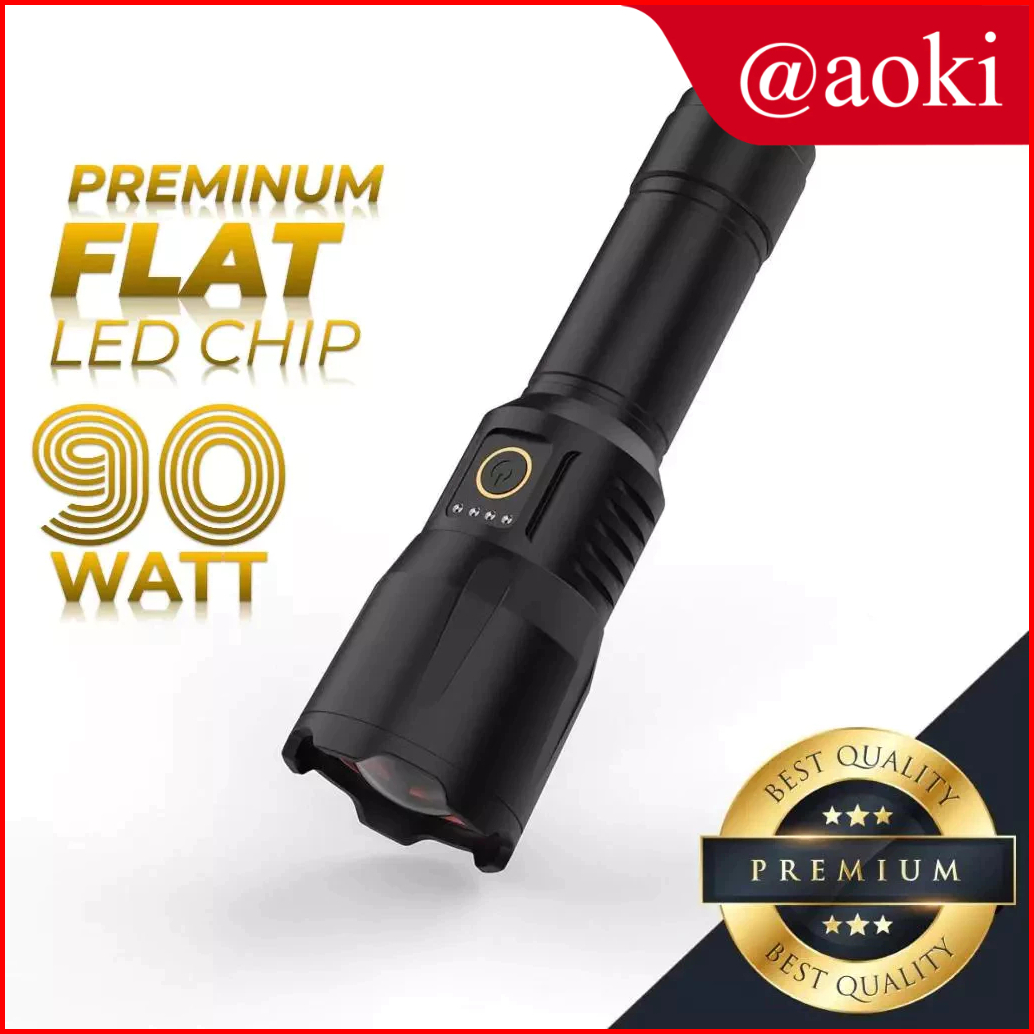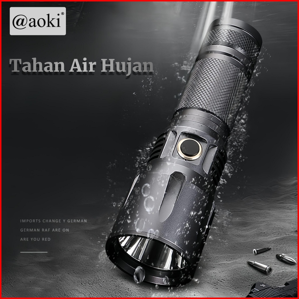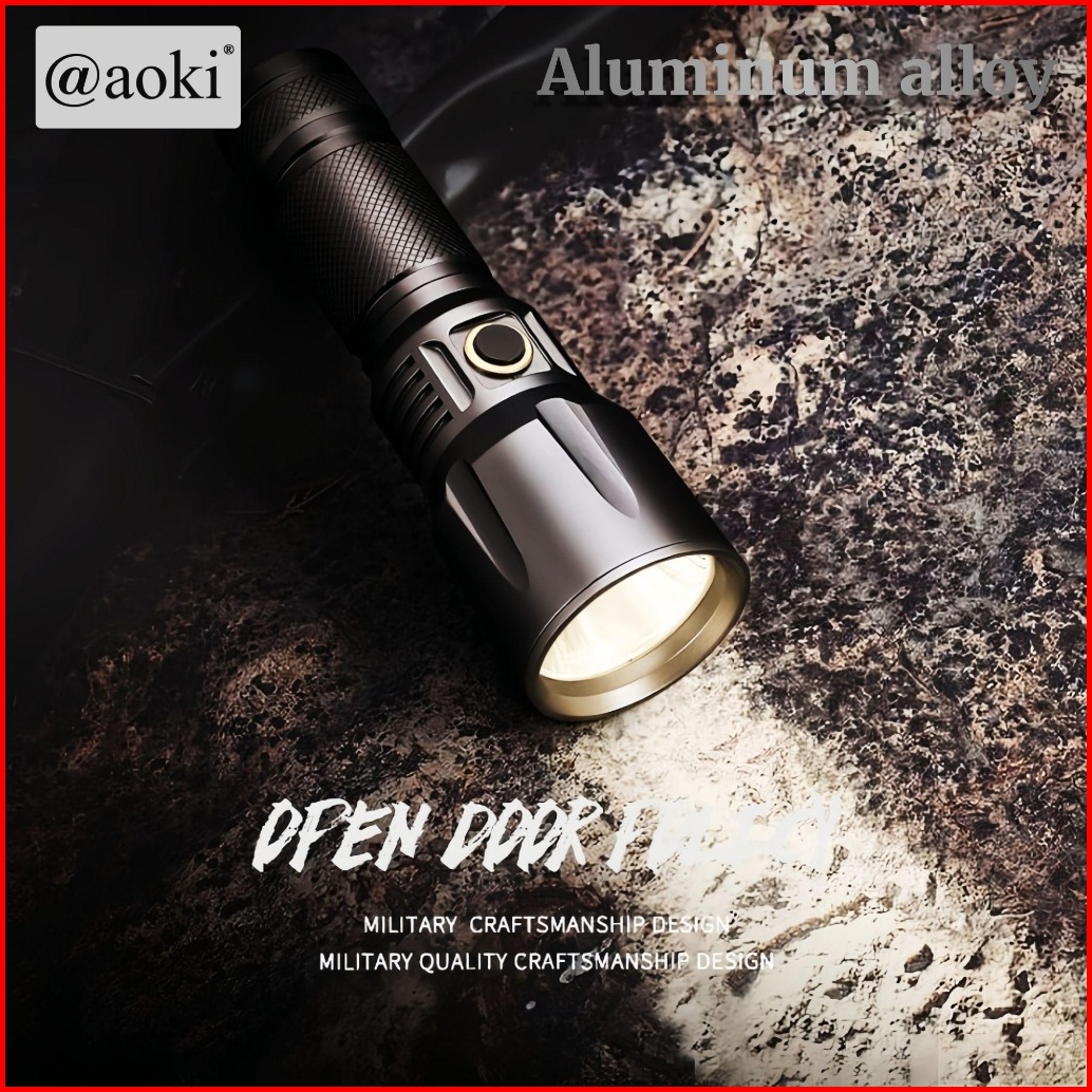 Aoki Senter Aluminum Alloy Flashlight Laser Swat Super Terang 90w Baterai Lithium Tahan Banting Powerbank Type-c Recharg