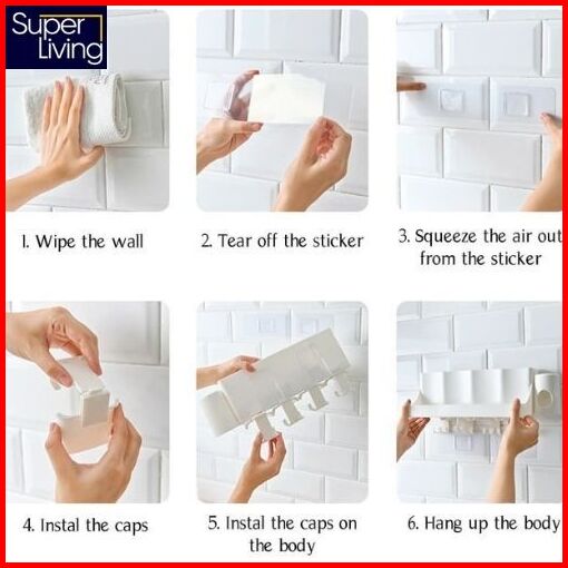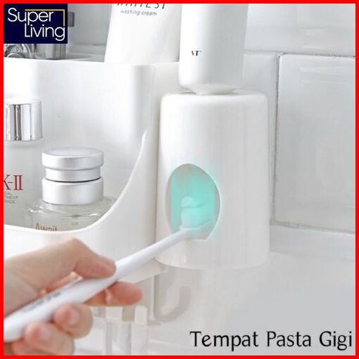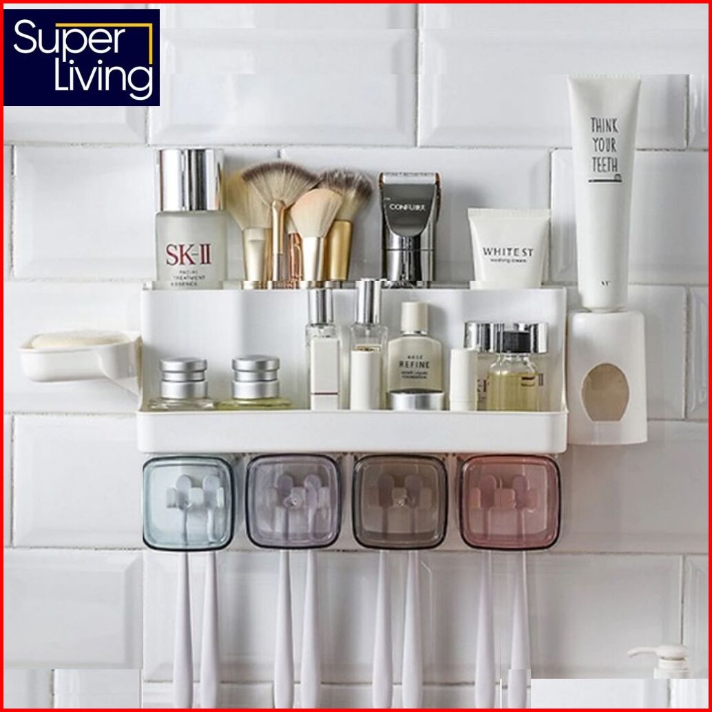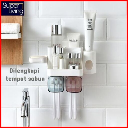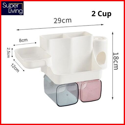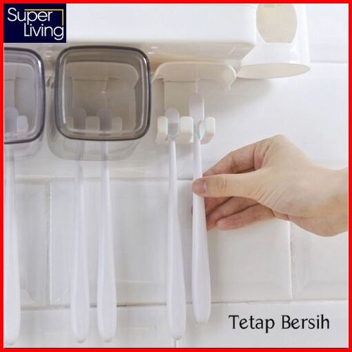 Rak Sikat Gigi Kamar Mandi Tooth Brush Hanger Organizer 4 Cup Set Plastik Dispenser Odol Tempat Sabun