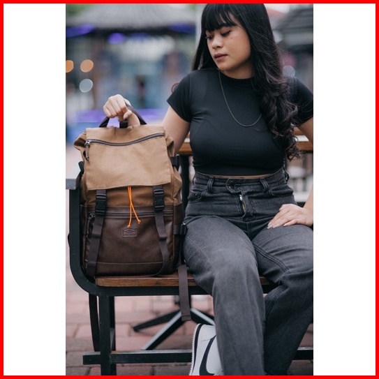 Gh.bag Ransel Sekolah Ransel Foster Wanita New Style Backpack Kanvas Lembut Kombinasi Kulit Sintetis