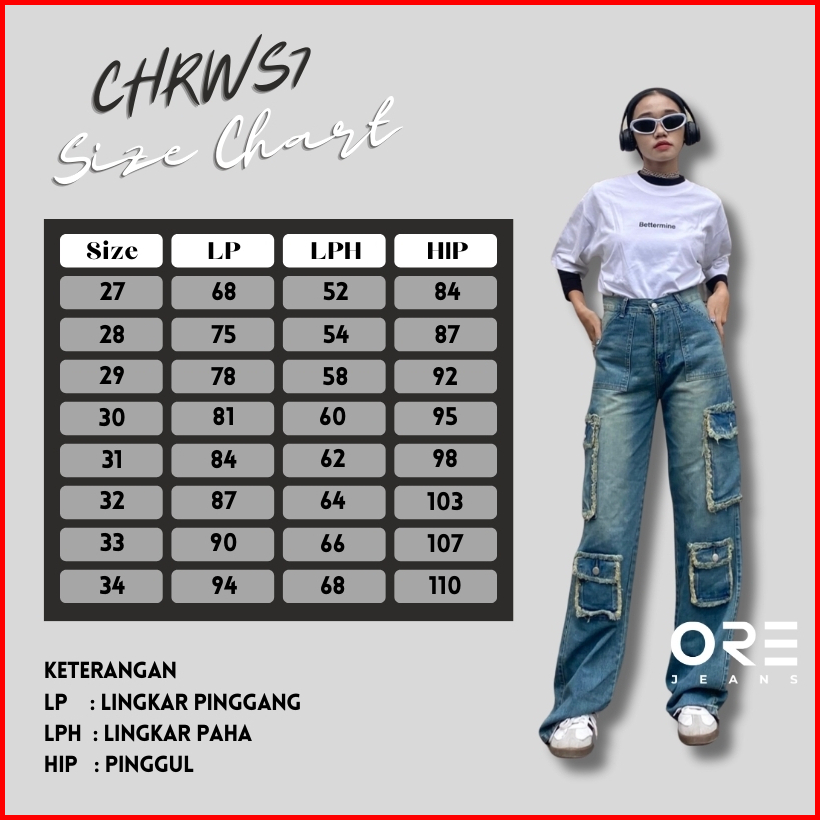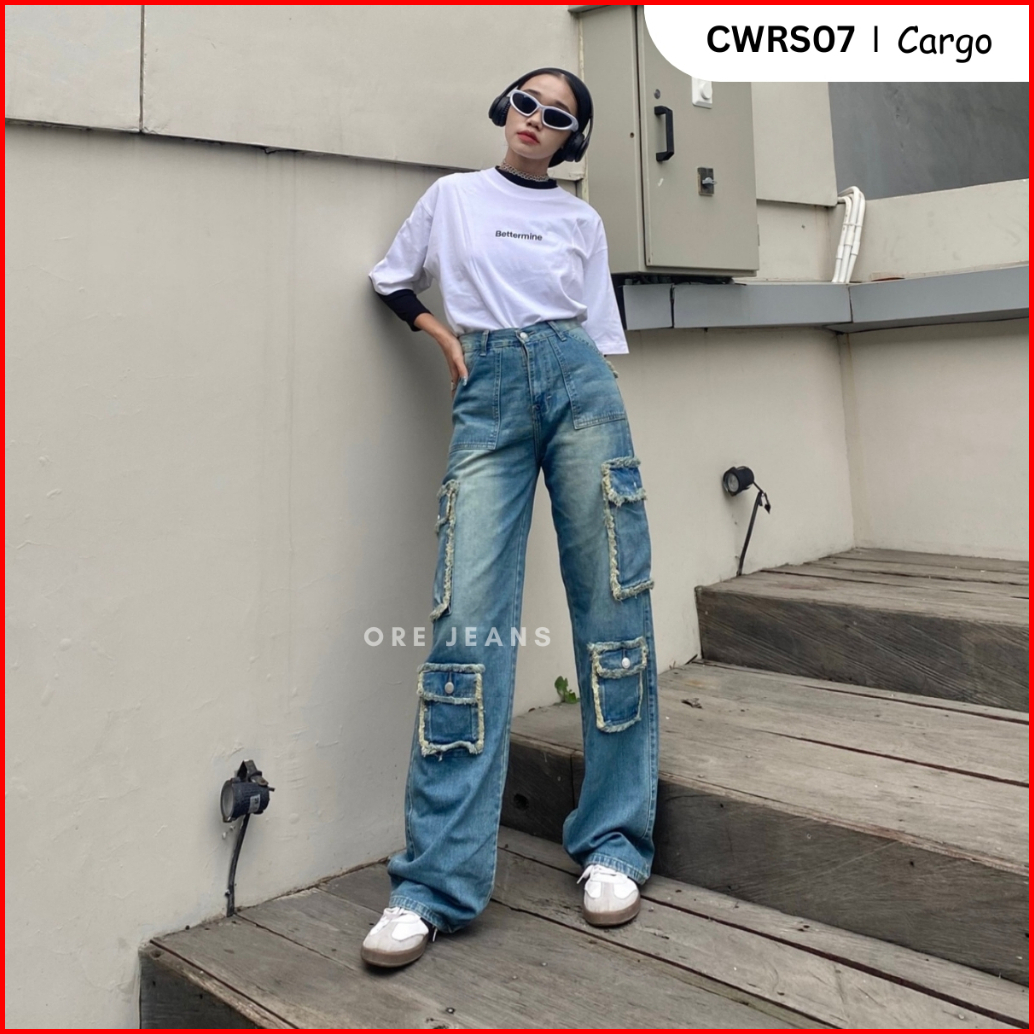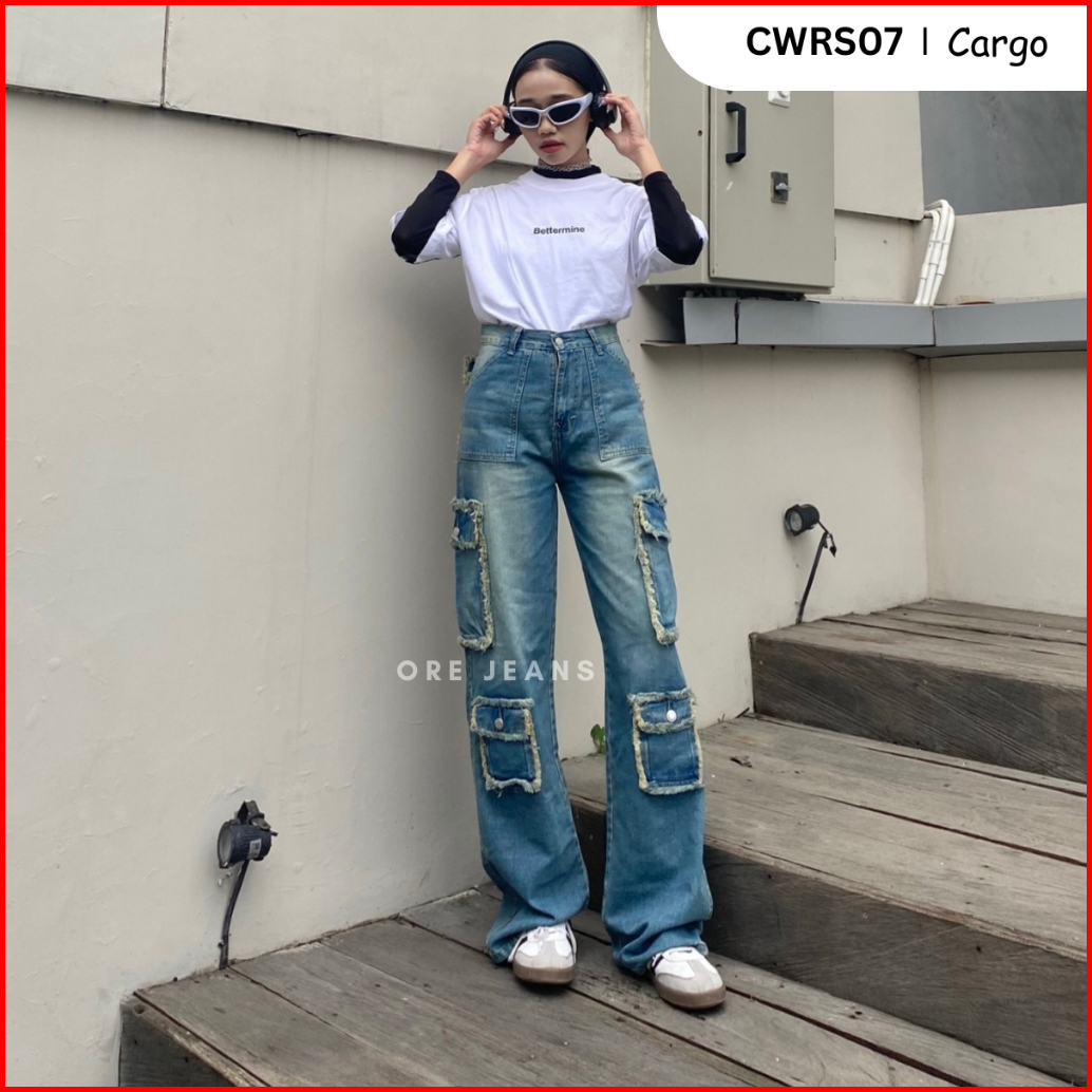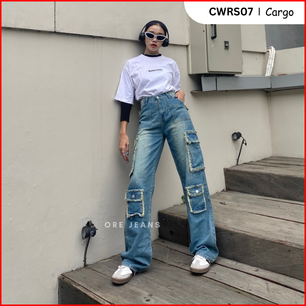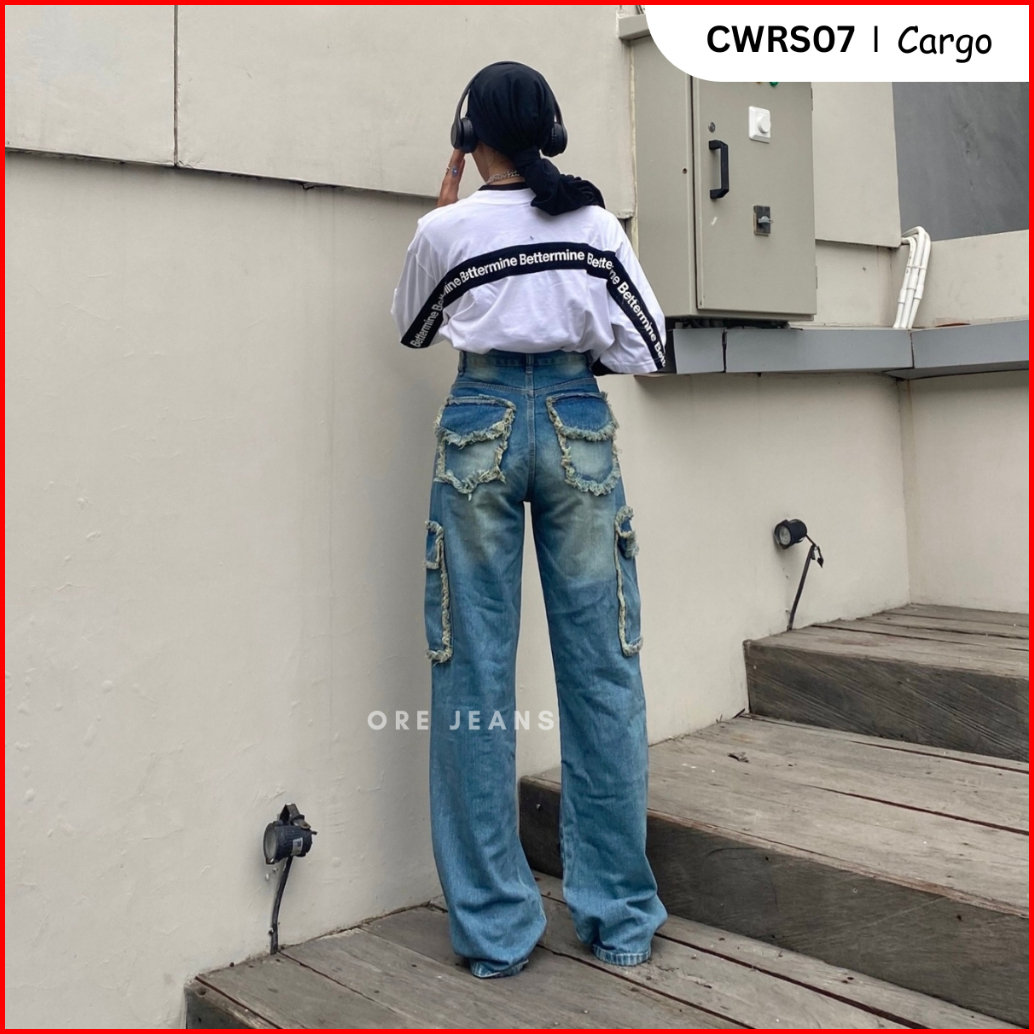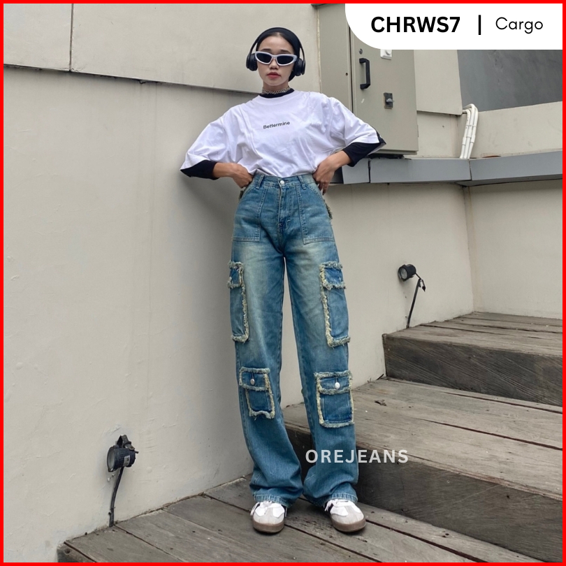 Ore - Chrws7 Highwaist Cargo Loose Jeans Rawis Vintage Wash Street Wear