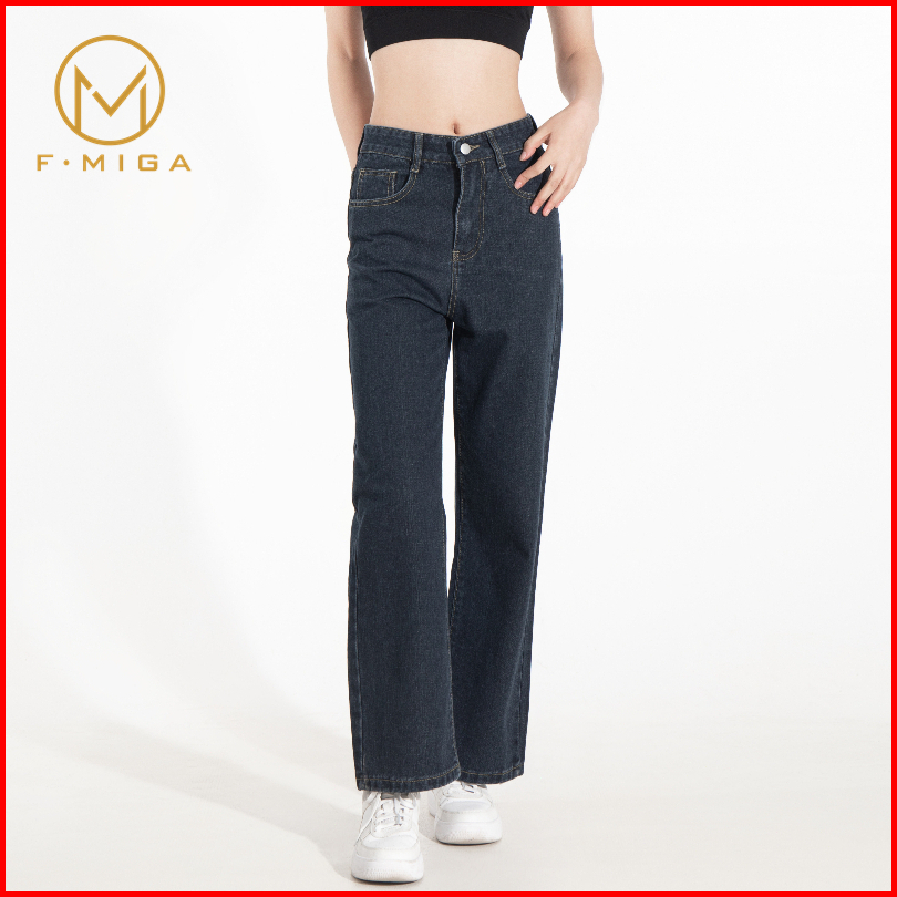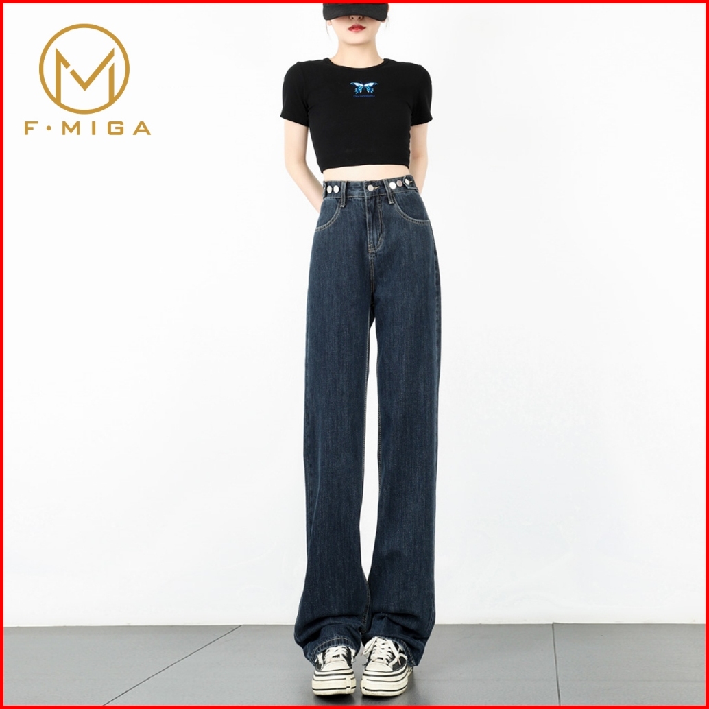 F Miga C40 Korean Boyfriend Celana Jeans High Waist Wanita - Abu-abu Biru