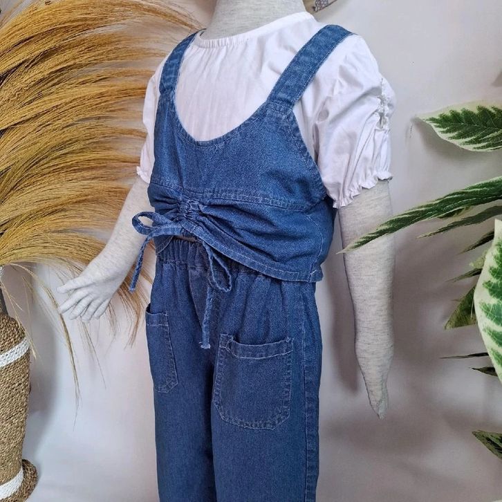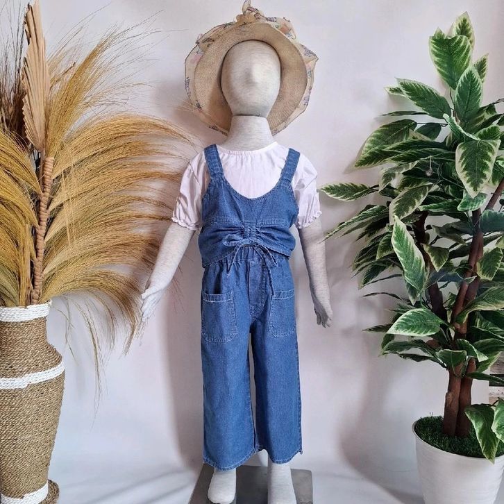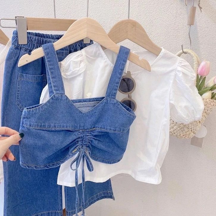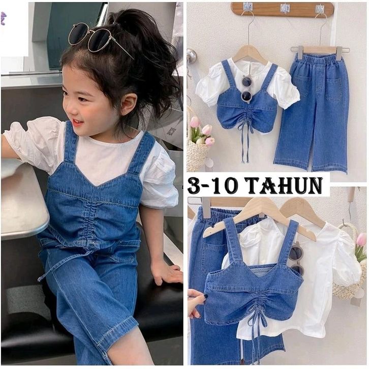 Setelan Set Anak Perempuan 3 in 1 + Rompi +Celana Jeans Kulot Fashion Anak Perempuan 1 - 12 Tahun