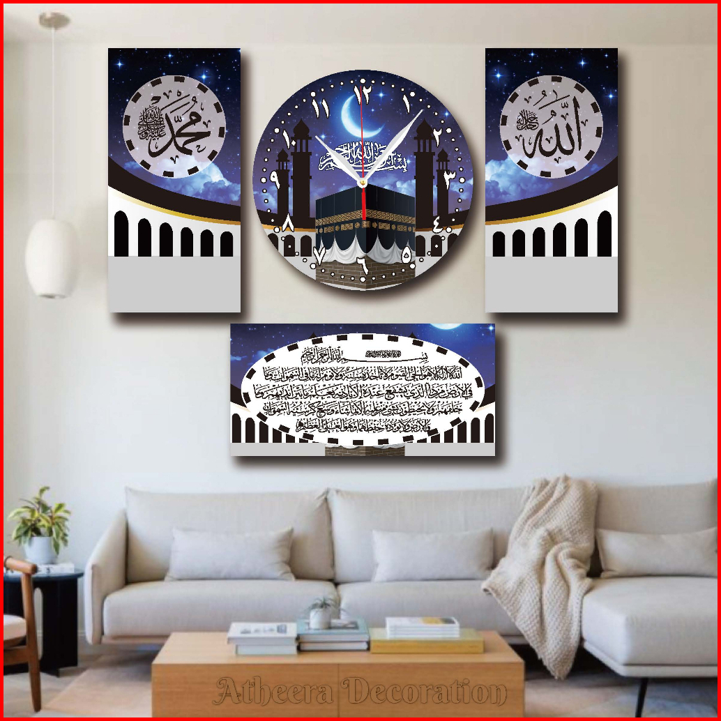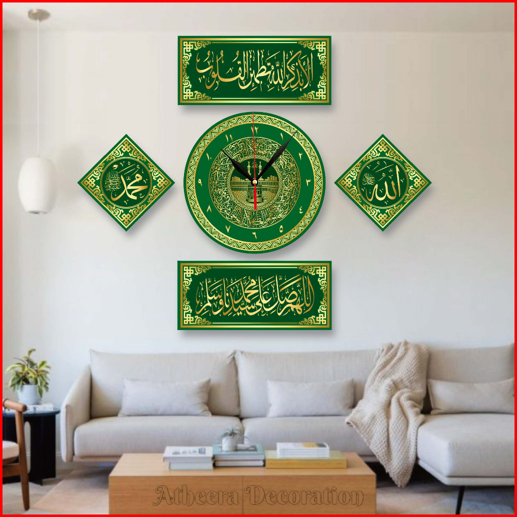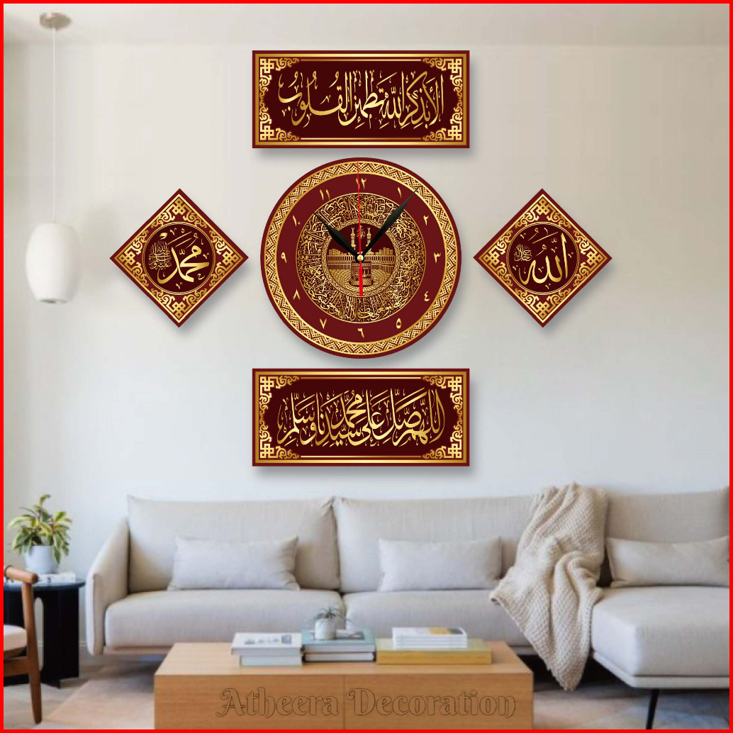 1 Set Jam Dinding Kaligrafi Mewah Kayu Mdf