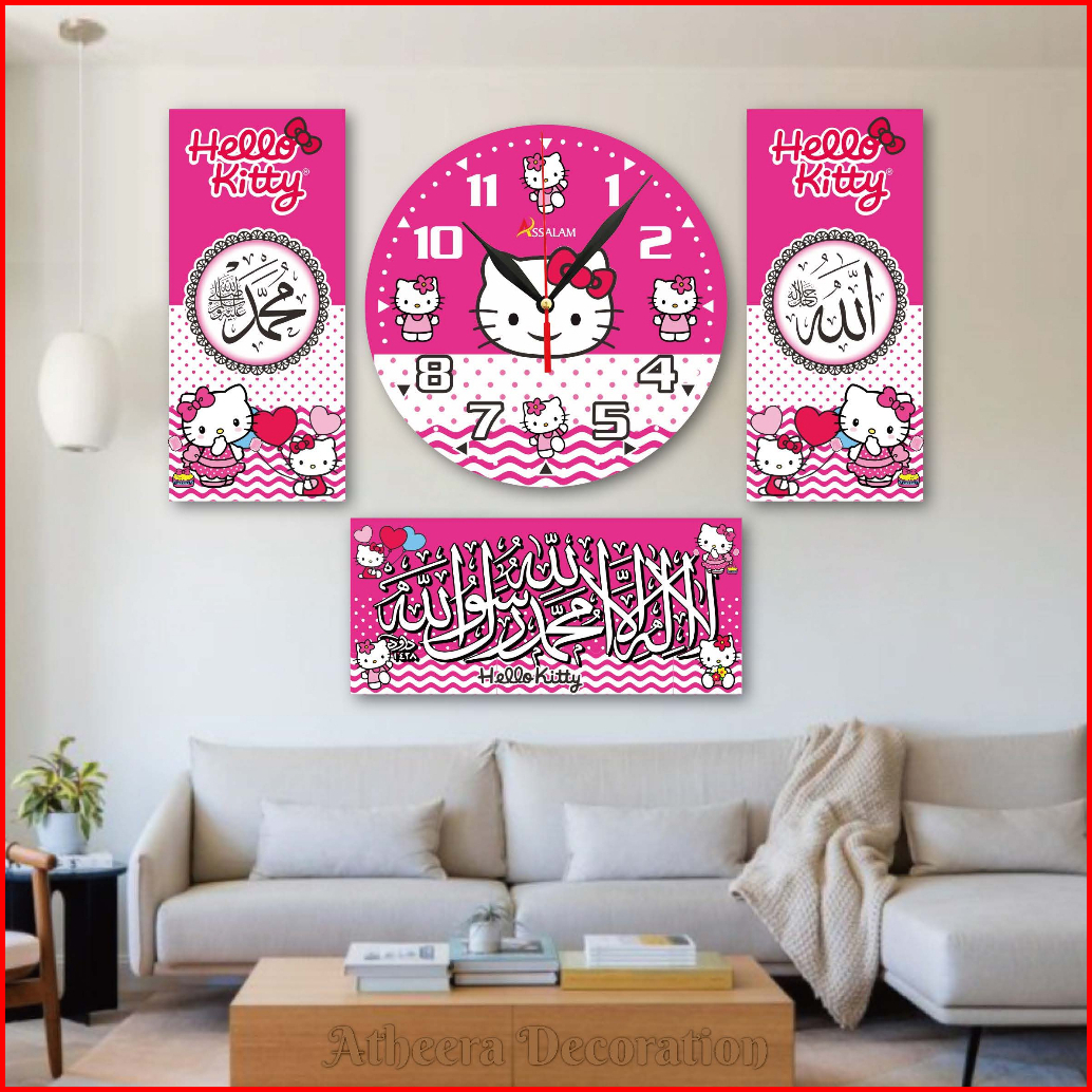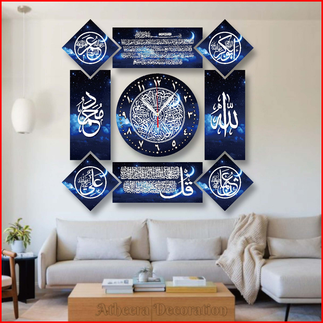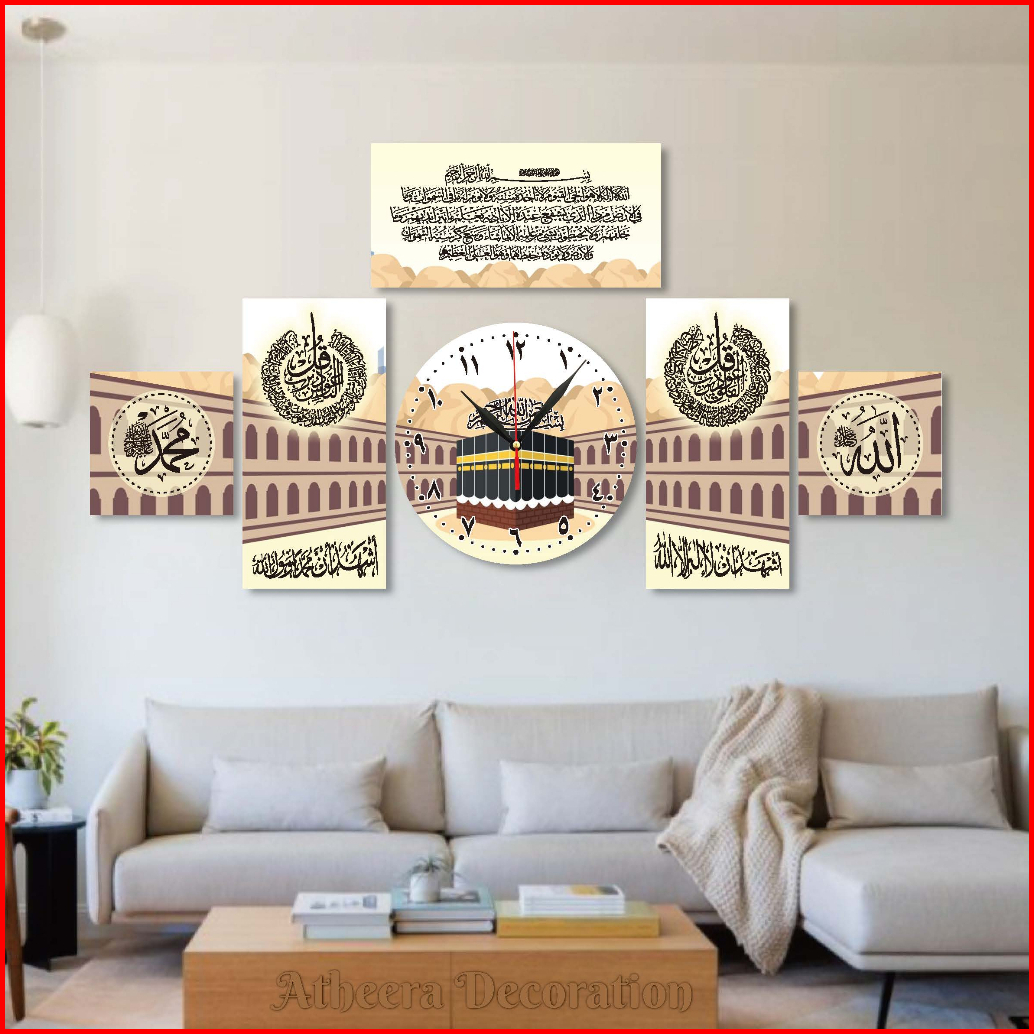 1 Set Jam Dinding Kaligrafi Mewah Kayu Mdf