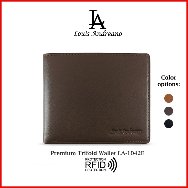 Louis Andreano - La-1042e - Dompet Lipat Pria Trifold Kulit Sapi Full Grain Premium
