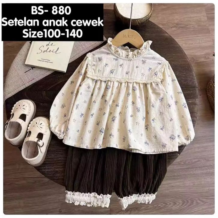Setelan Anak Perempuan Bunga Renda Atasan Lucu Celana Corduroy Coklat Baju Anak Cewek Modis Size 100-140