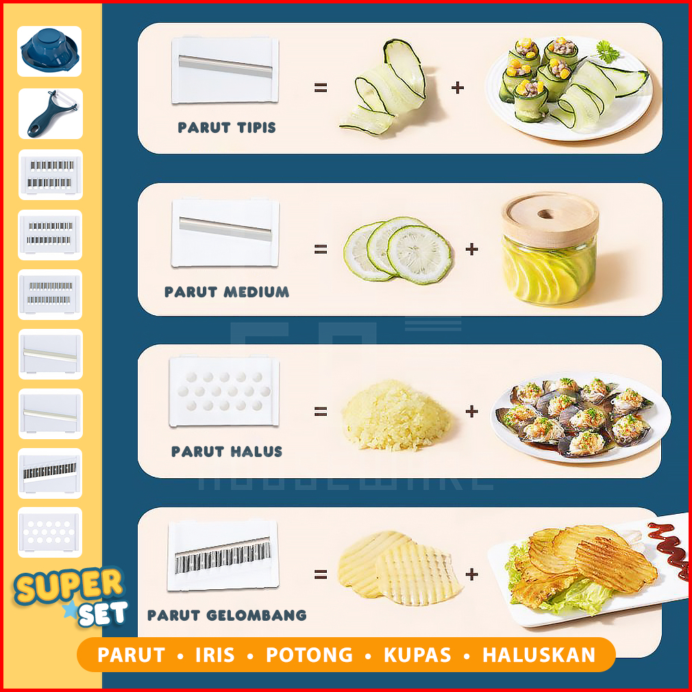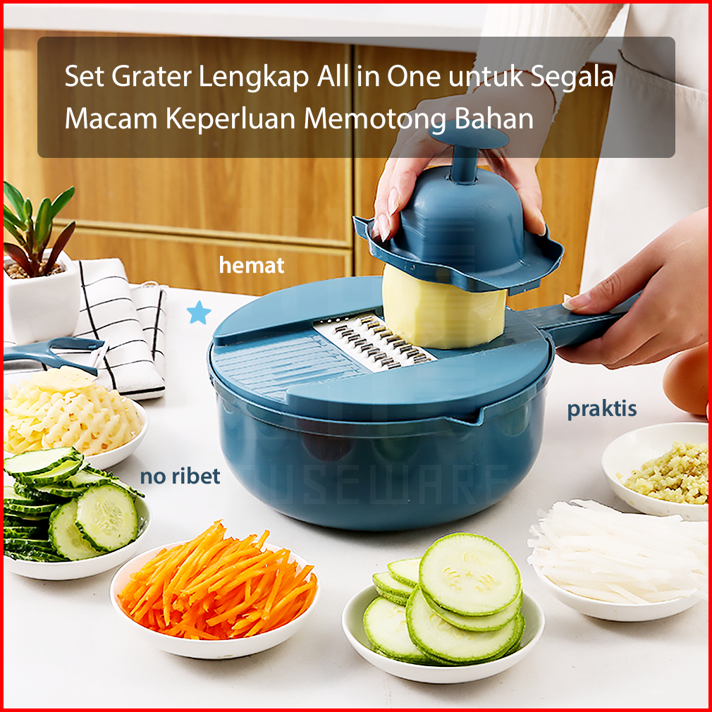 Hugo Parutan Serbaguna Set 11 In 1 Parutan Sayur Buah Wortel Kentang Multifungsi Peeler Pemotong Pengupas Serbaguna