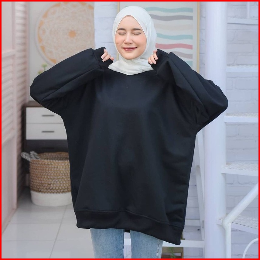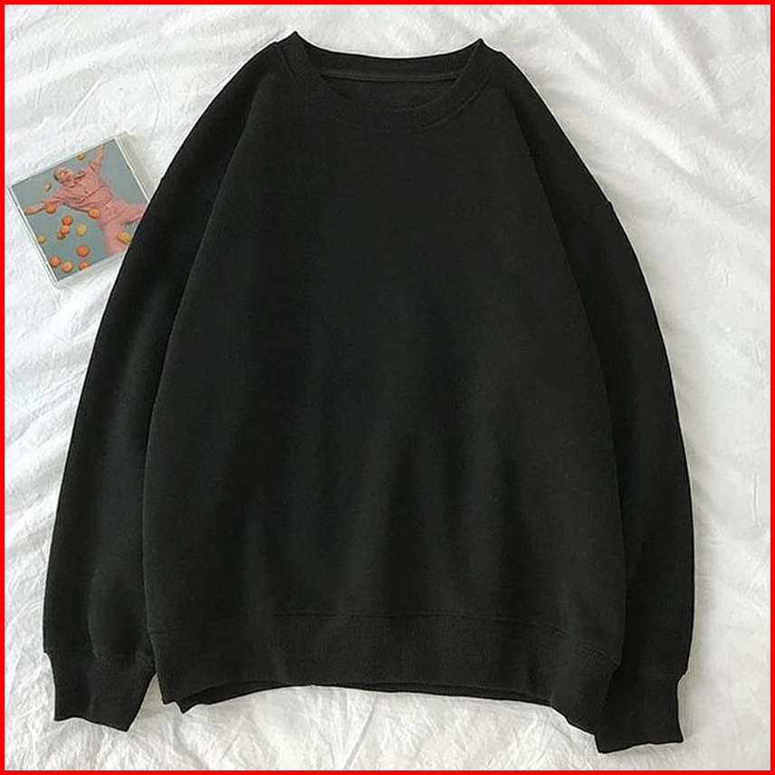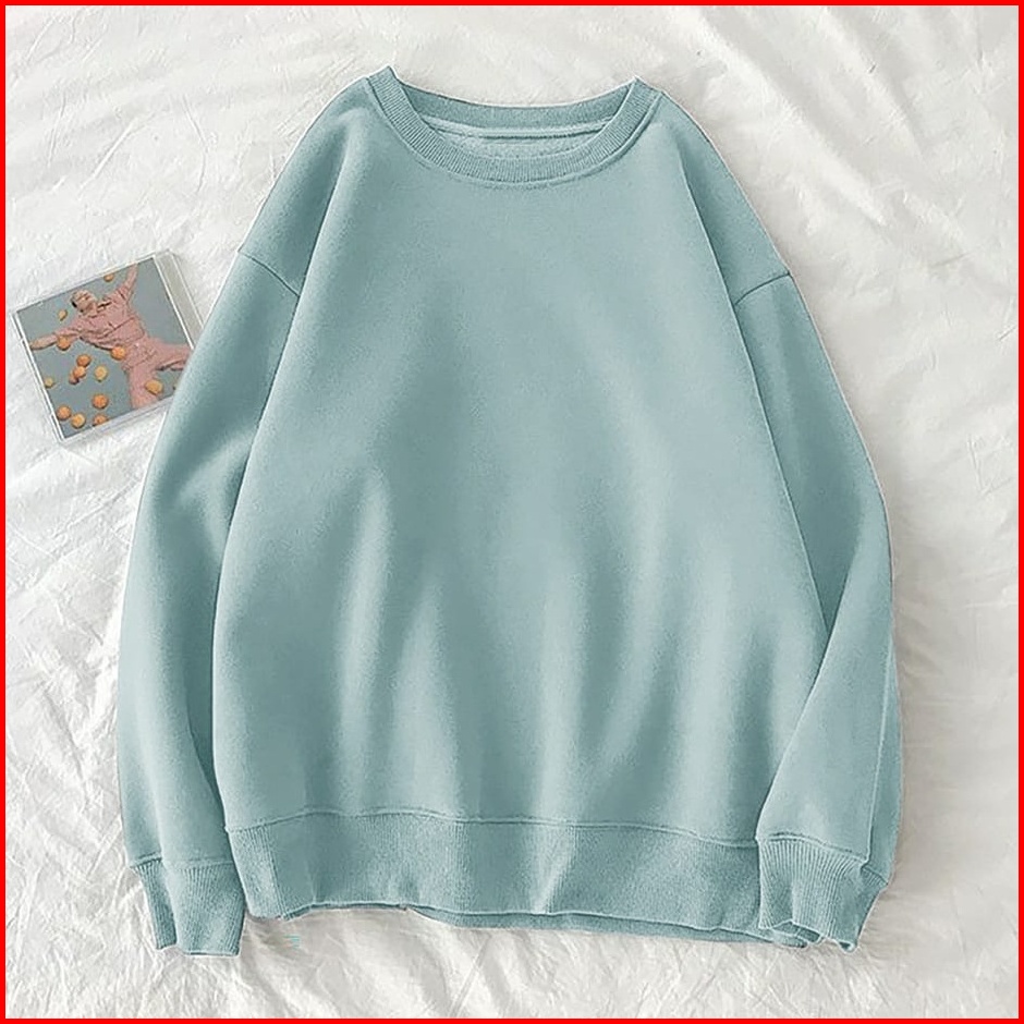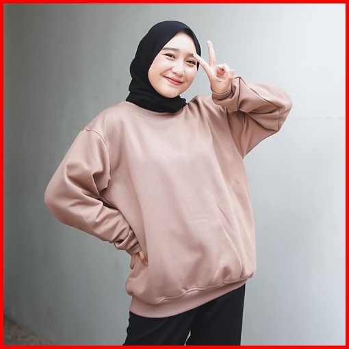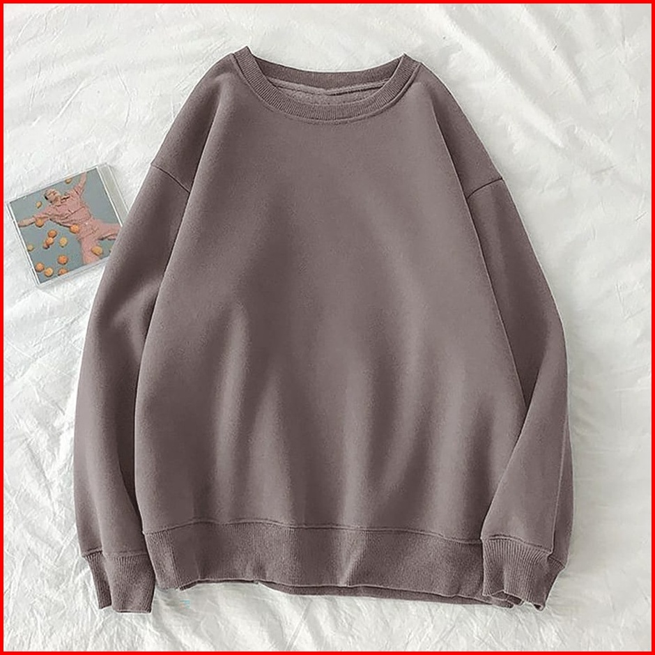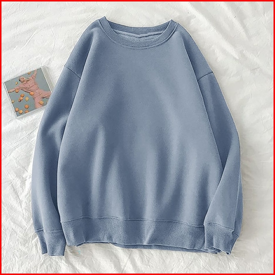 Xxl Oversize Sweater Polos Basic Premium Fleece Tebal Outerwear Crewneck Remaja Wanita Pria Korean Style Kekinian