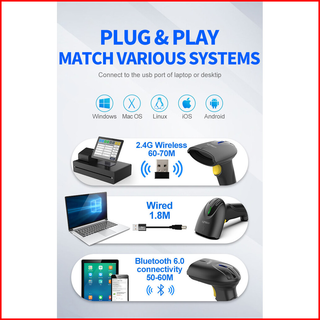Barcode Scanner 1d 2d Autoscan Support Scanner Kabel Wireless Bluetooth Cocok Untuk Keperluan Kasir Scan Barcode Produk