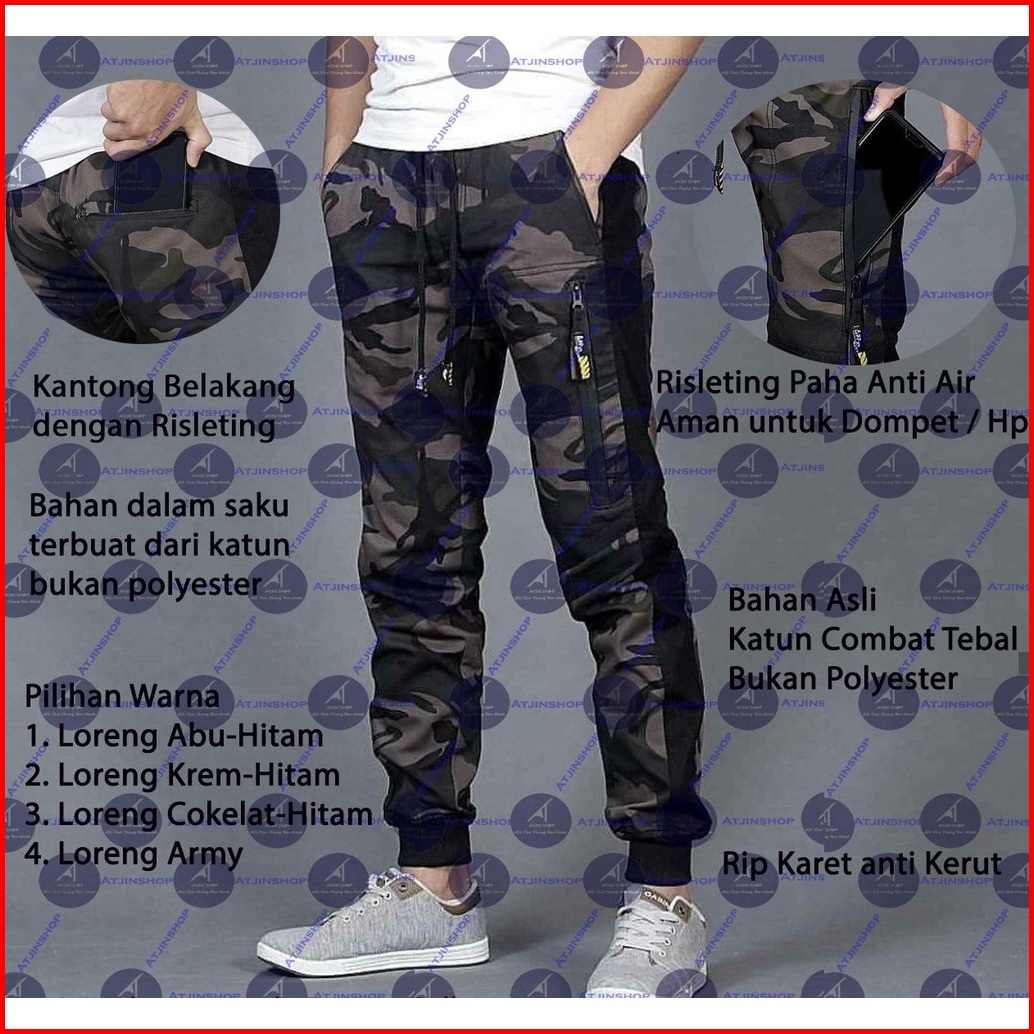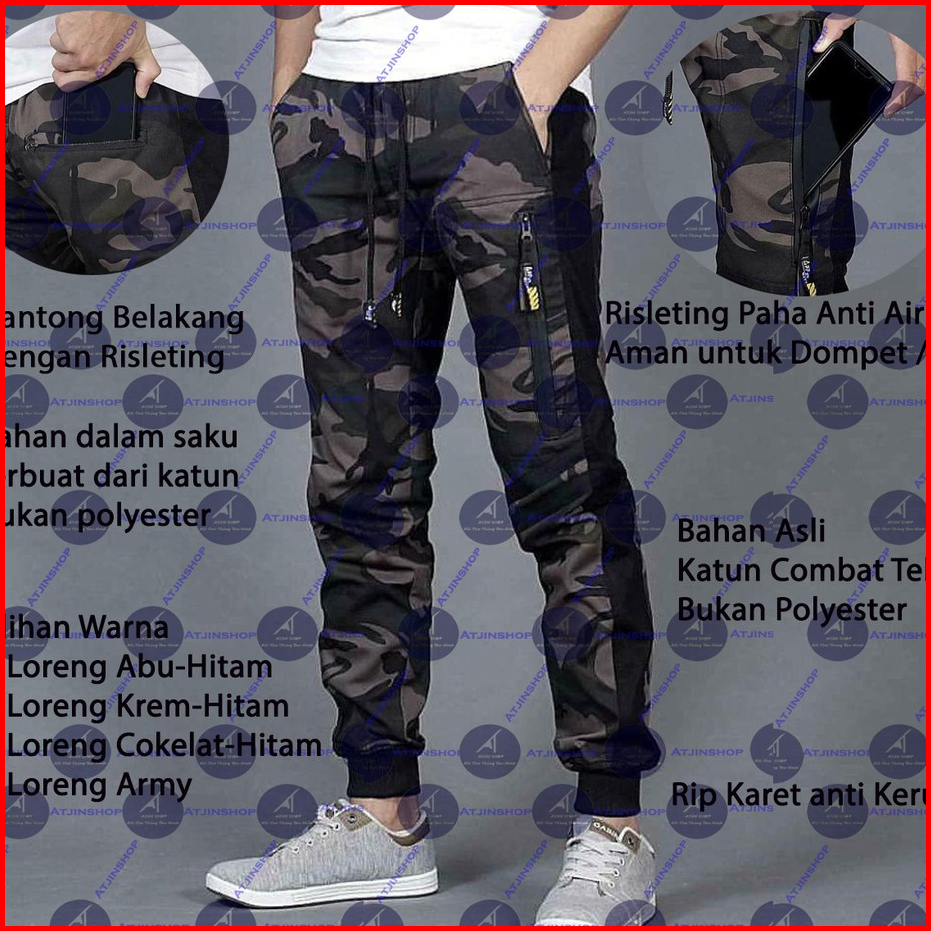 Atjin- Celana Joger Loreng Pria Dewasa Termurah Model Terbaru Tactical Army Commando Katun