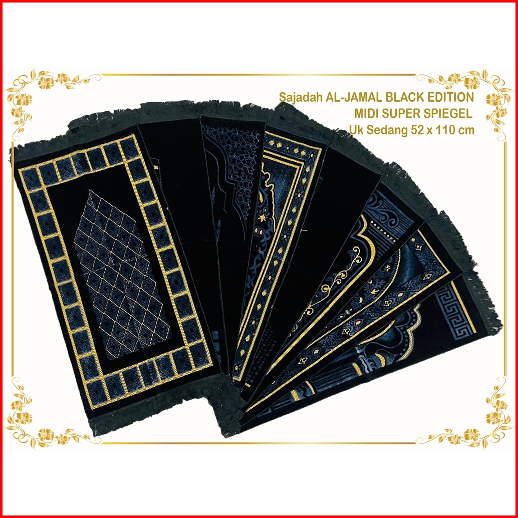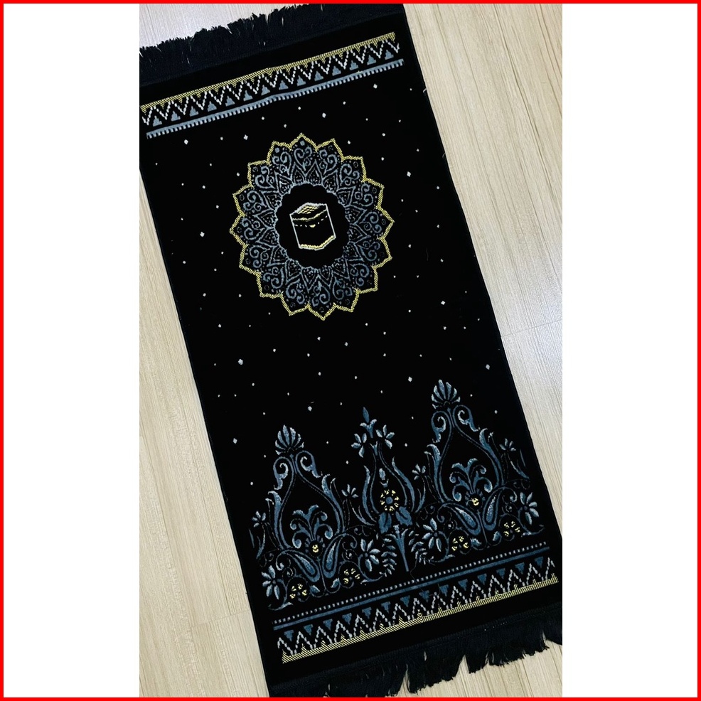 Hampers Sajadah Midi Black 110x50cm Tebal Lembut Dengan Tasbih Souvenir Kado
