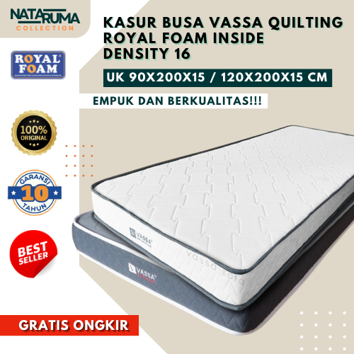 Kasur Busa Vassa Quilting Royal Foam Inside Grey/White Single Size Tebal 15 cm Density 16 Anti Bakteri Termurah Ori