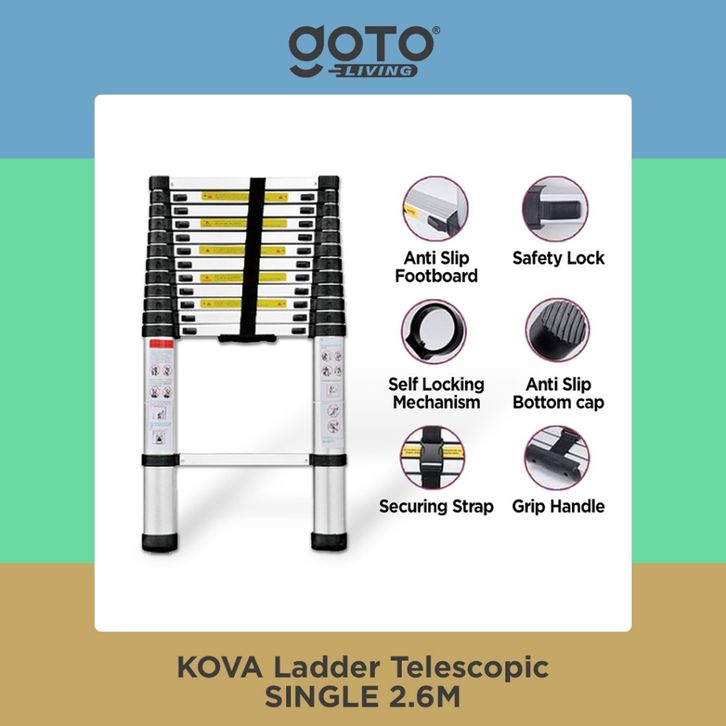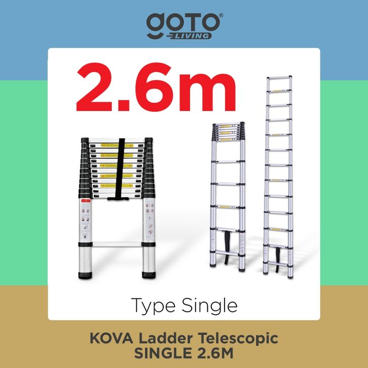 Tangga Lipat Aluminium Teleskopik 2.6M Single Telescopic Ladder 2.6 M