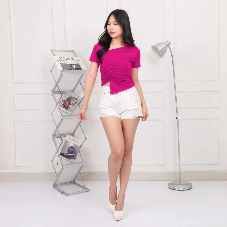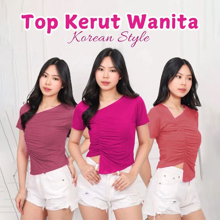 Kaos Atasan Wanita Shirt Crop Top Kerut V-Neck 6044