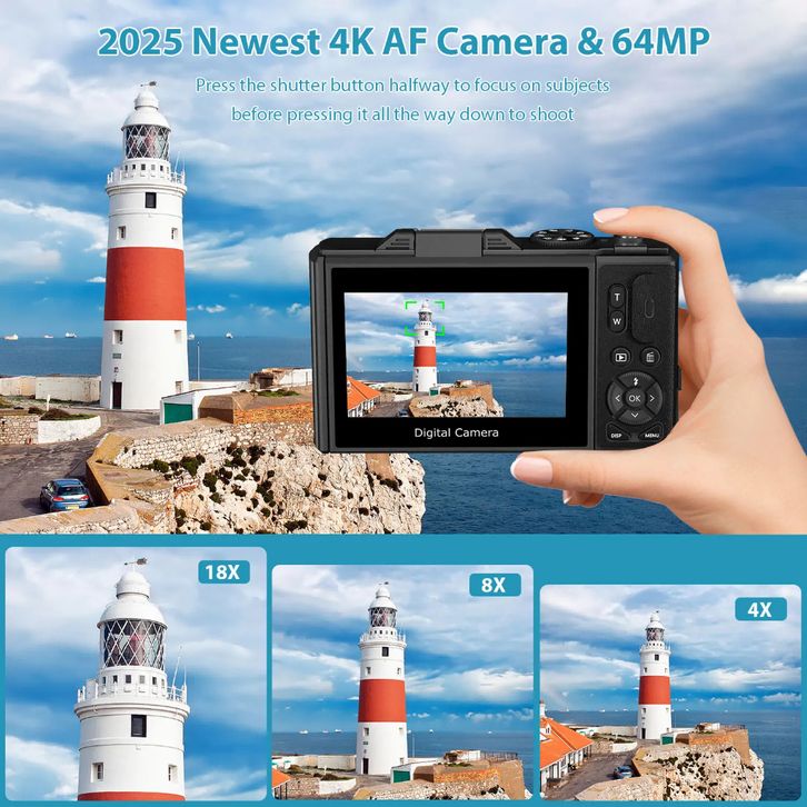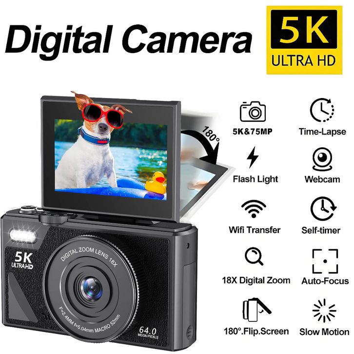Kamera Digital WiFi 75MP 4K Zoom 18X Layar Swafoto Flip 180° 64MP Video 5K Vlog Ringkas DSLR Travel Pemula