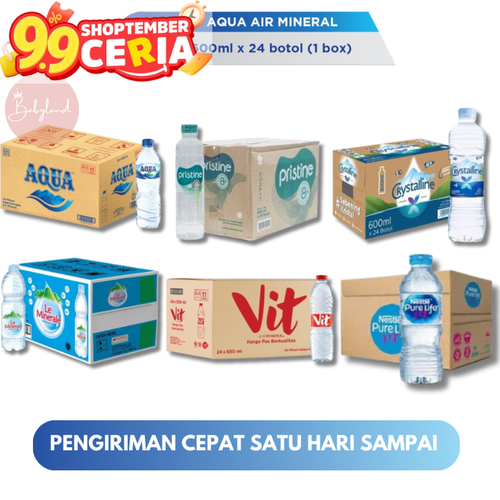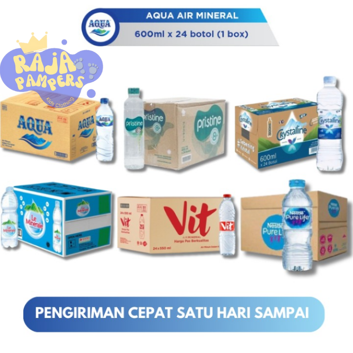 Air Mineral Kemasan 600ml / Air Mineral Aqua Botol / Air Minum Amidis/Pristine/Crystalline/Nestle/Vit/Prima/Lemineral