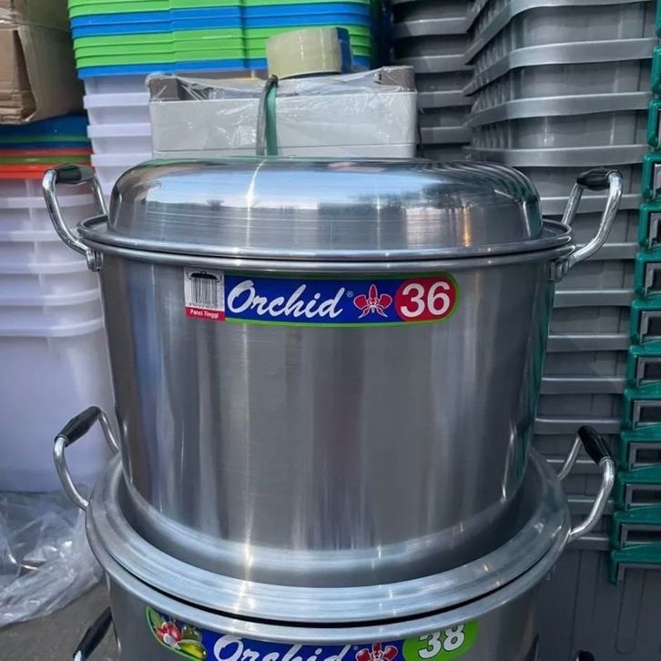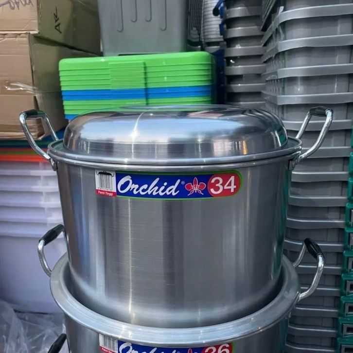 Panci Stainless Steel Panci Kukus Dandang Nasi Jumbo Langseng Nasi Serbaguna Dandang Kukusan Orchid No 30-40 Termurah