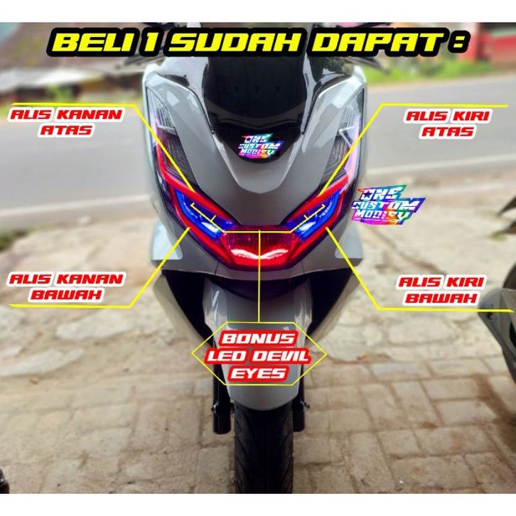 LAMPU ALIS DRL NEW PCX 160 BONUS DEVIL EYES LAMPU AKSESORIS MOTOR PCX DEPAN SENJA LIS VARIASI NEW PCX 160 2021