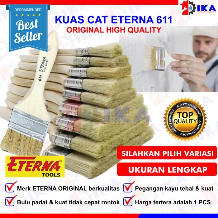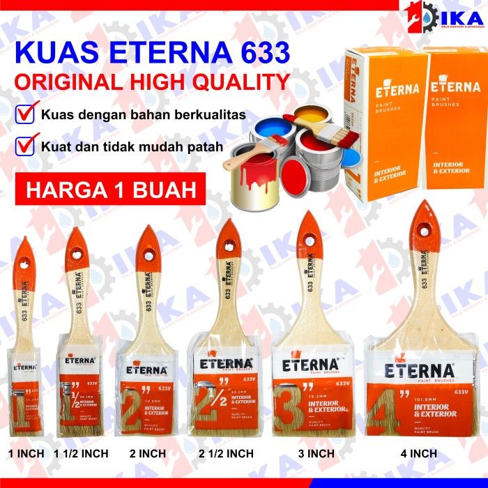 Kuas cat tembok ETERNA ASLI 633 3 inch kualitas bagus bulu kuat awet - ETERNA 611 1INC