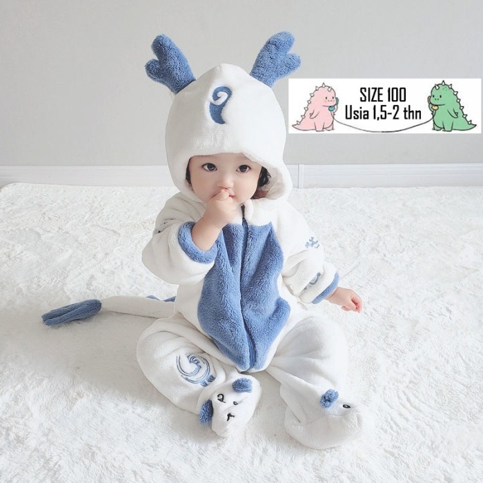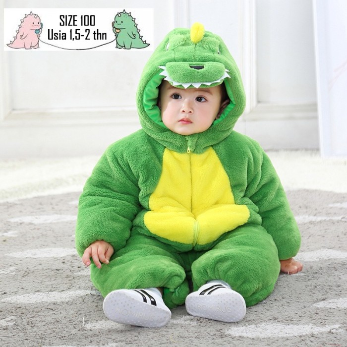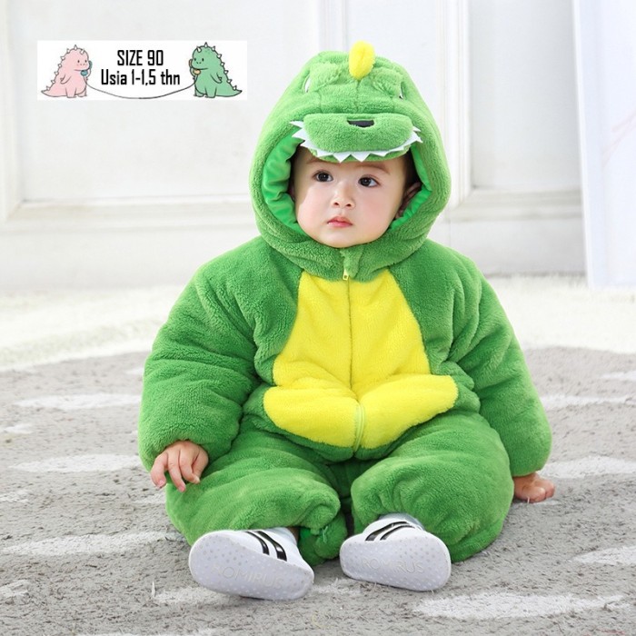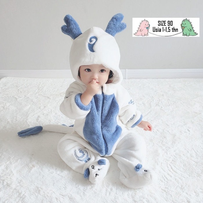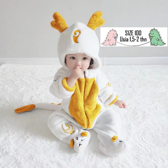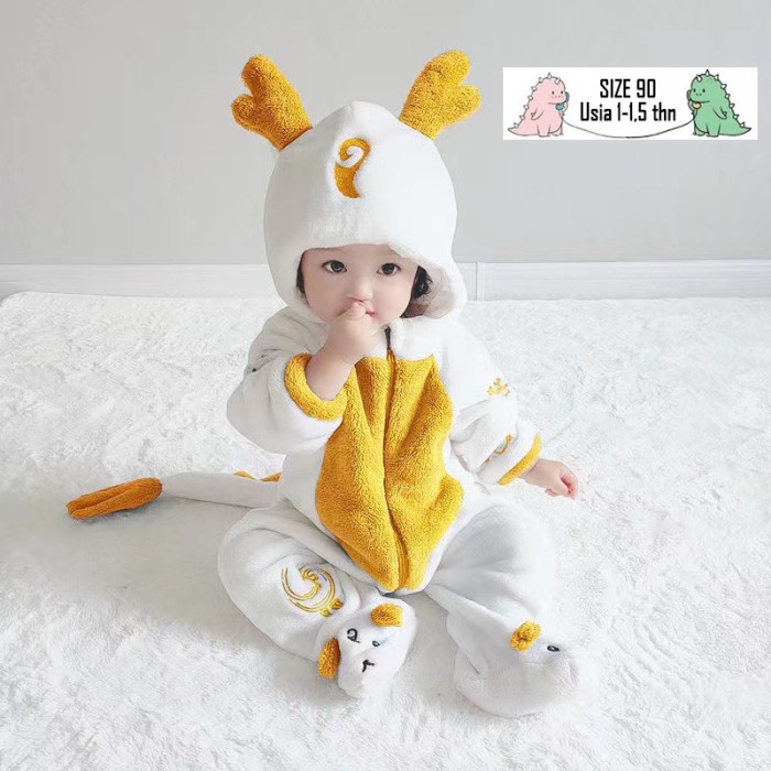 BAJU PIYAMA KOSTUM ONE SIE ANAK BAYI KARAKTER HEWAN - RUSA KUNING, 90