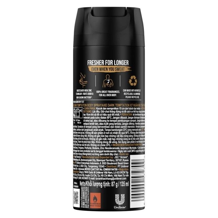 Axe Deodorant Deo Body Spray Parfum Pria Dark Temptation - 135Ml