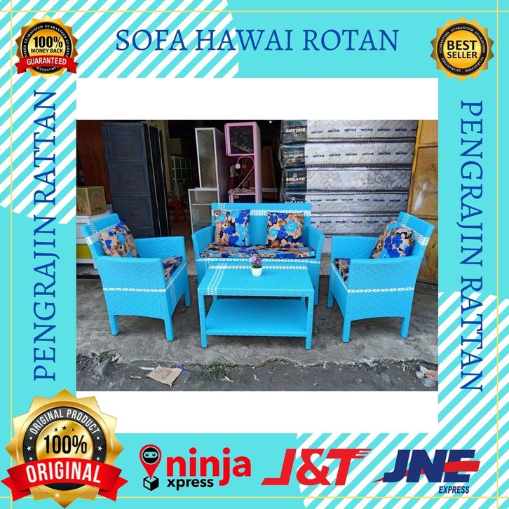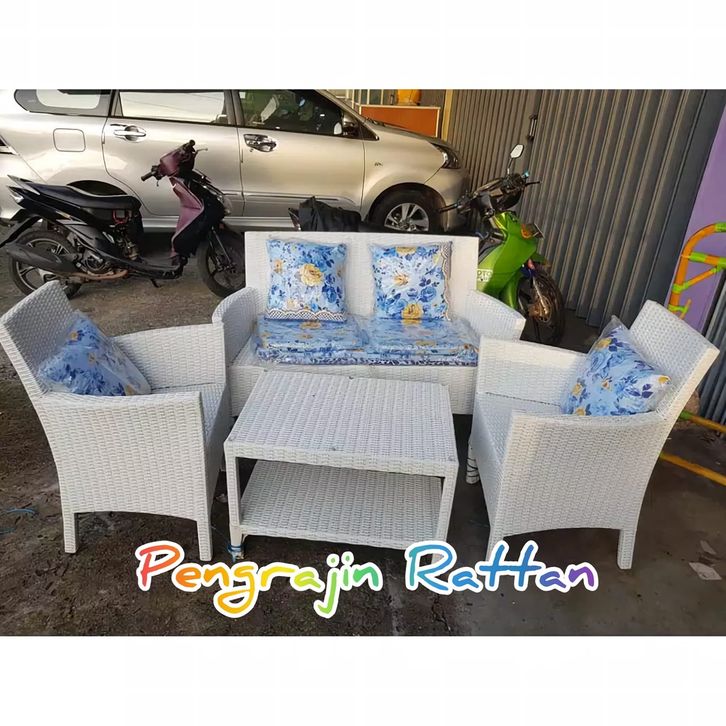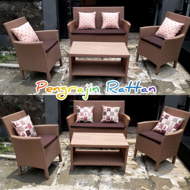 Set Kursi Korsi Bangku Sofa Hawai Santai Rotan Sintetis Furniture Set Meja Panjang
