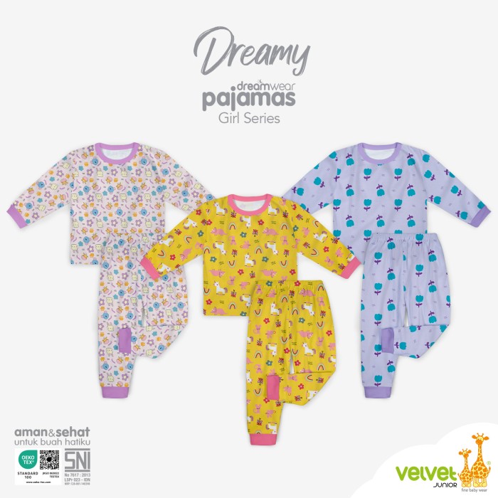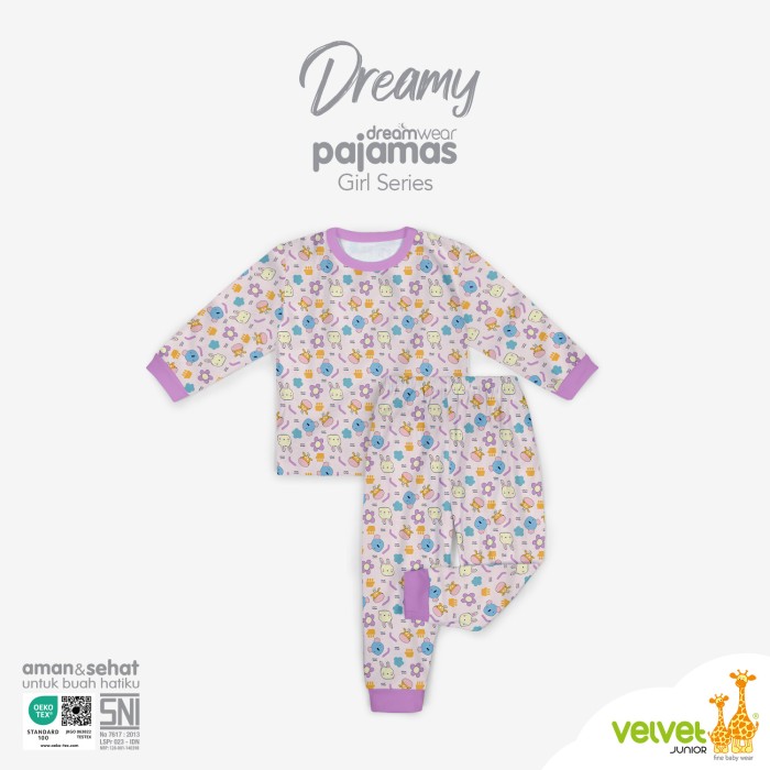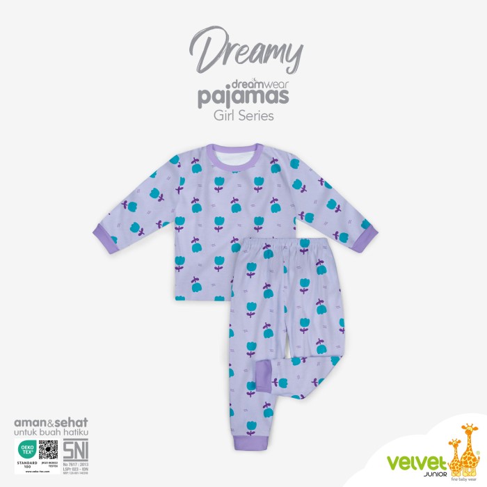 VELVET JUNIOR PIYAMA ANAK PEREMPUAN DREAMWEAR - DREAMY SERIES - TULIP, 6 6 TAHUN