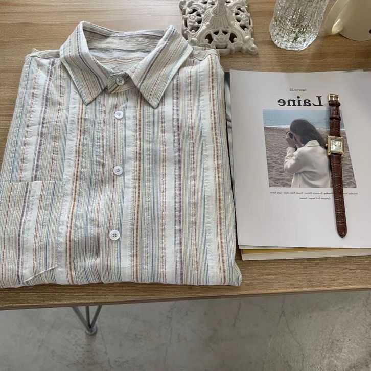 Kemeja Wanita Premium Lengan Panjang Korean Style Stripe Kasual Baju Atasan Wanita Kekinian Premium Blouse Wanita