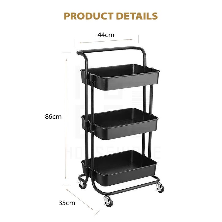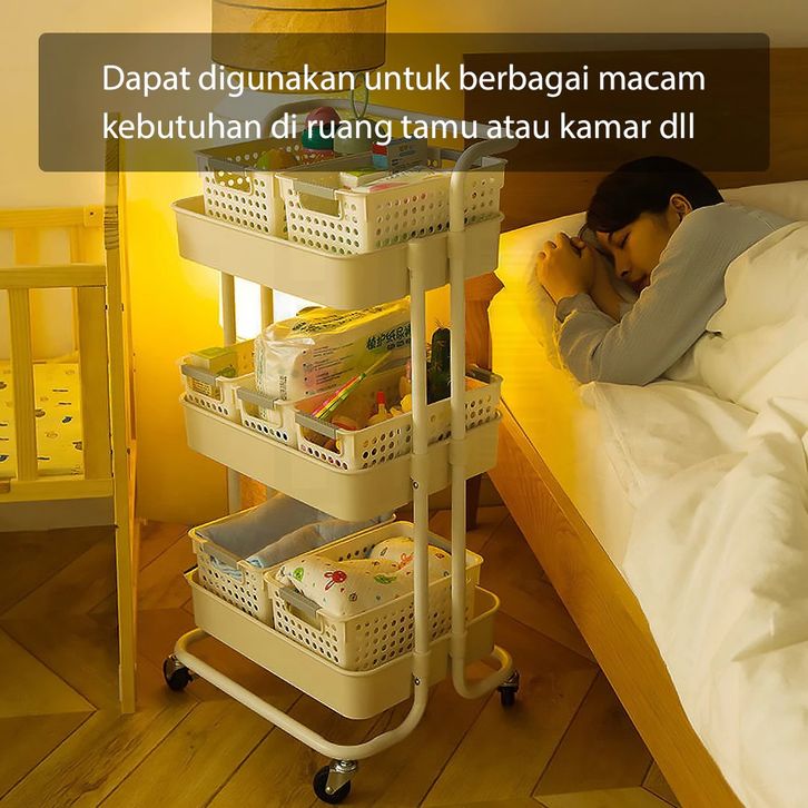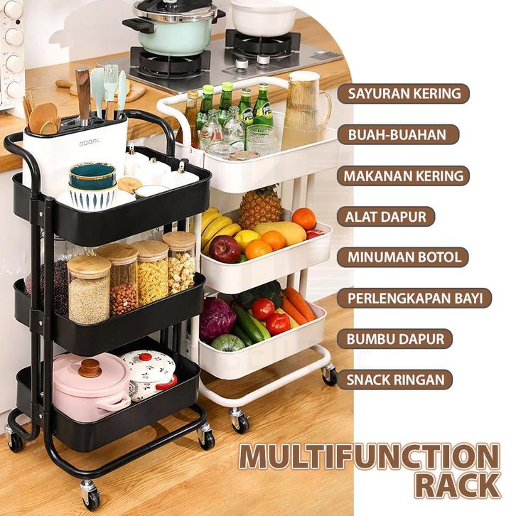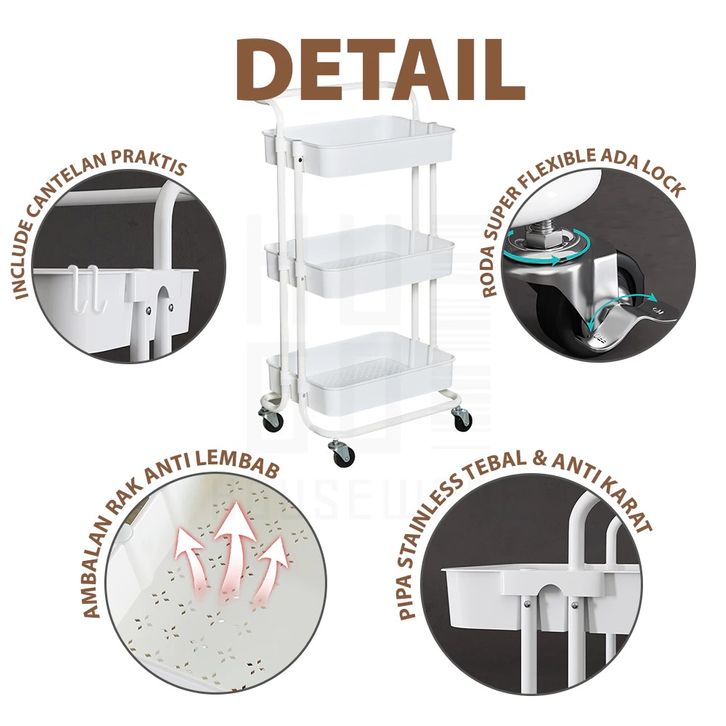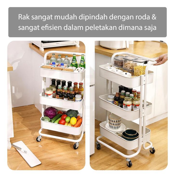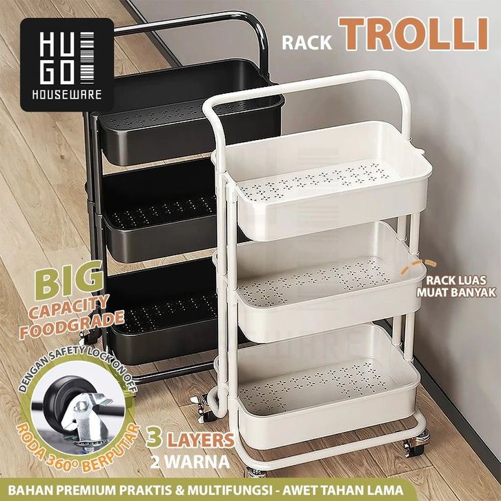 HUGO Rak Troli Susun Rak Dapur Serbaguna Rak Kamar Mandi Rak Salon Rak Penyimpanan Multifungsi dengan Roda dan Pegangan