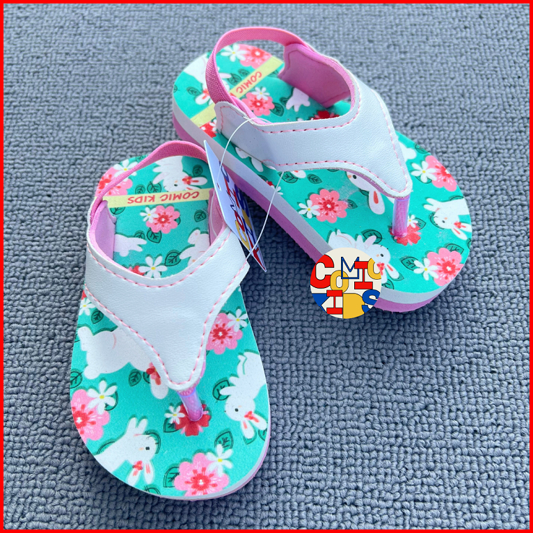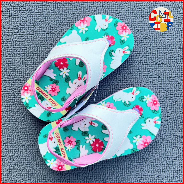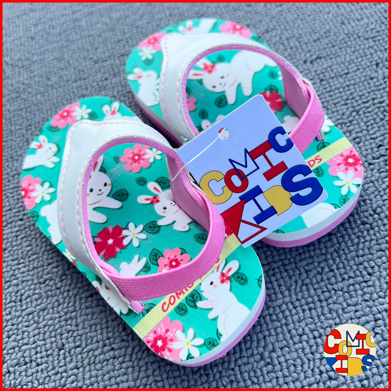 Sandal Jepit Anak Perempuan Comickids Sendal Bayi 1 Tahun Balita Bunny Flip Flop Girl Green Rabbit