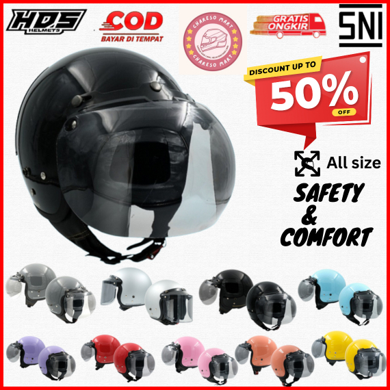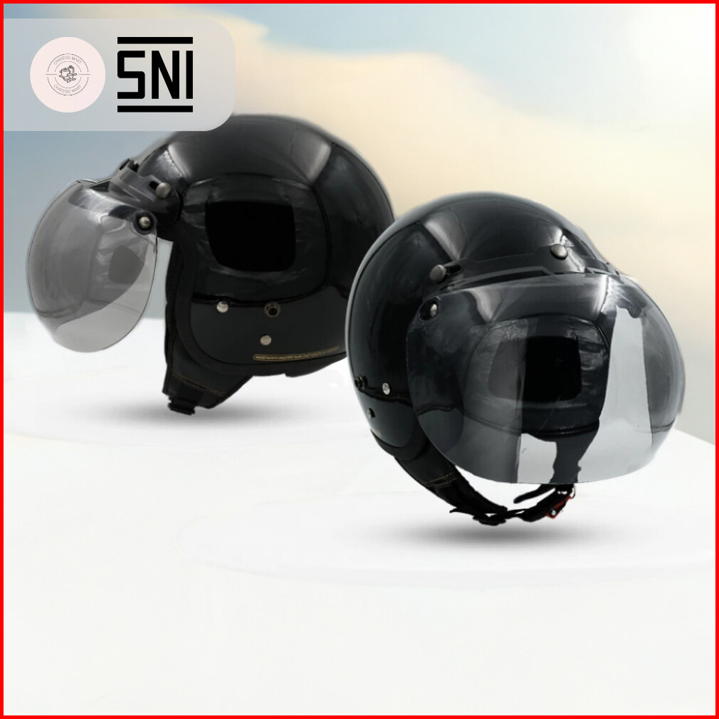 Helm Bogo Half Face Polos Dewasa Classic Retro Ori Hds Helmet Untuk Pria Wanita - Sni
