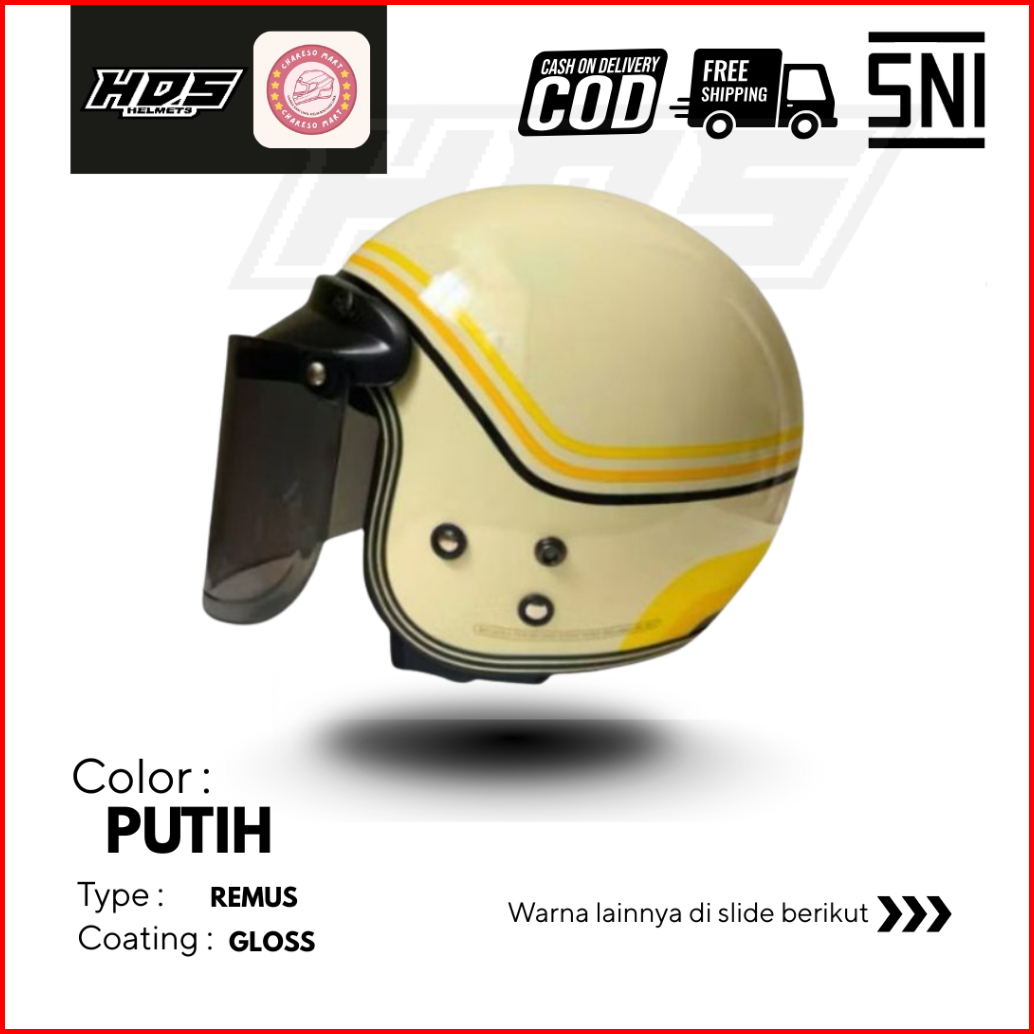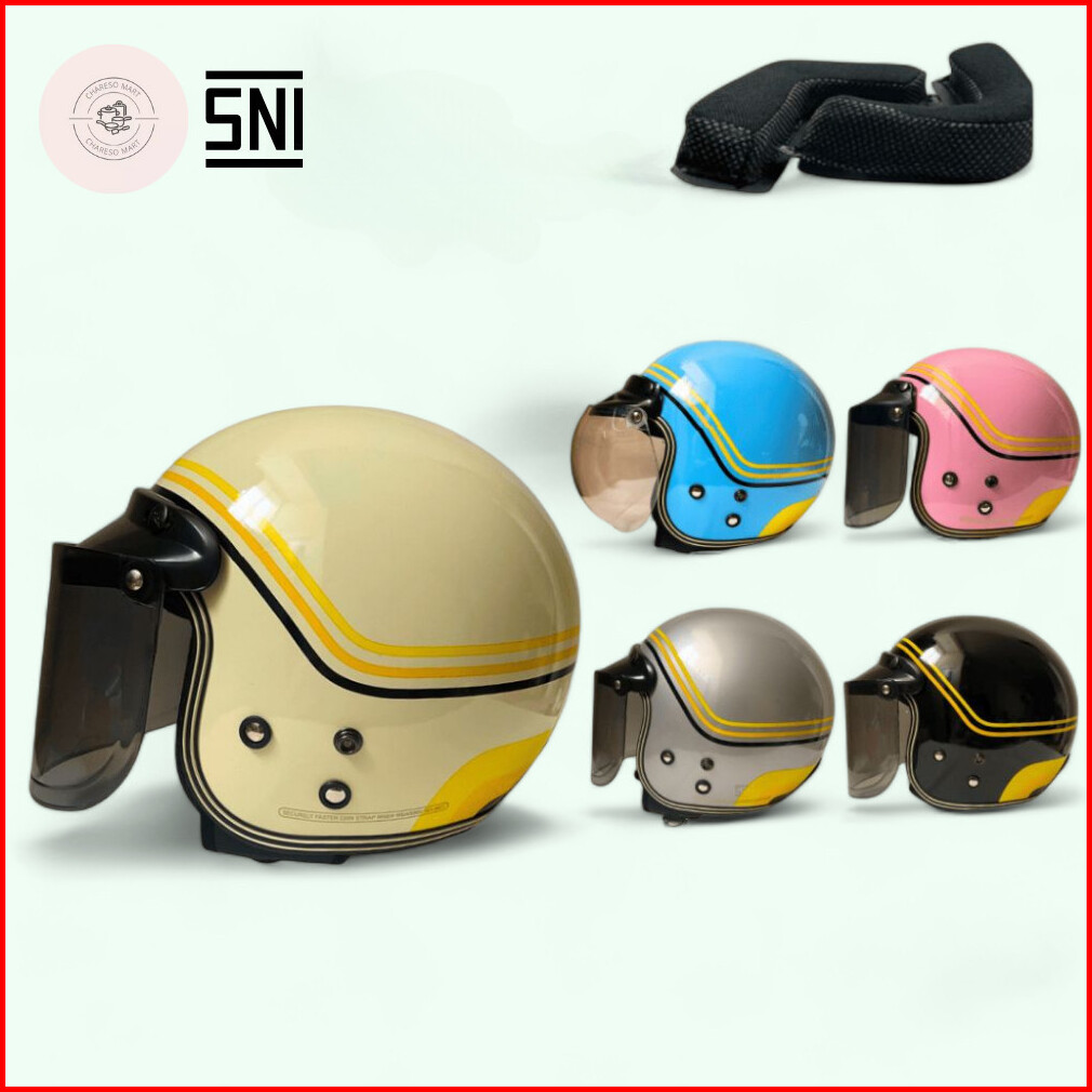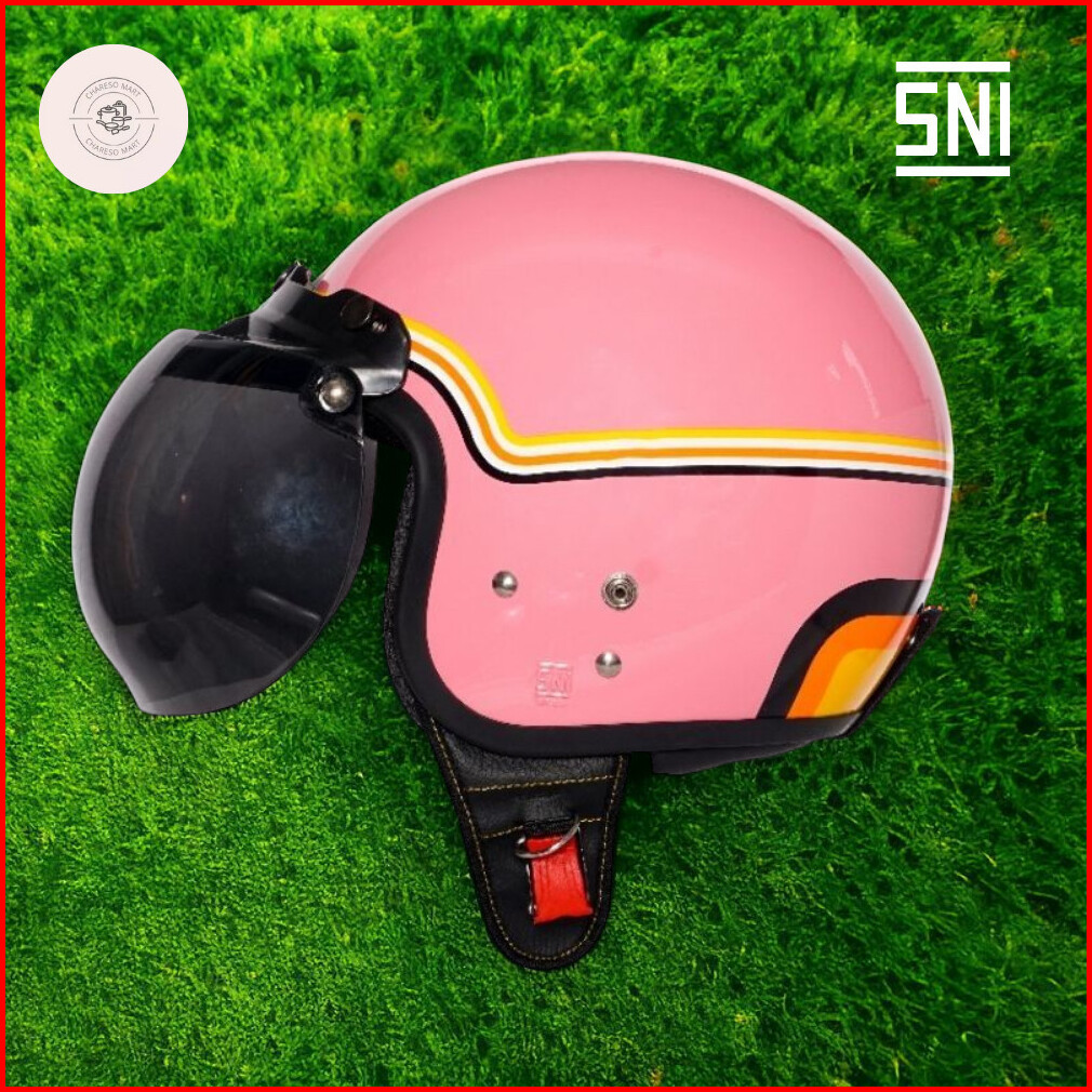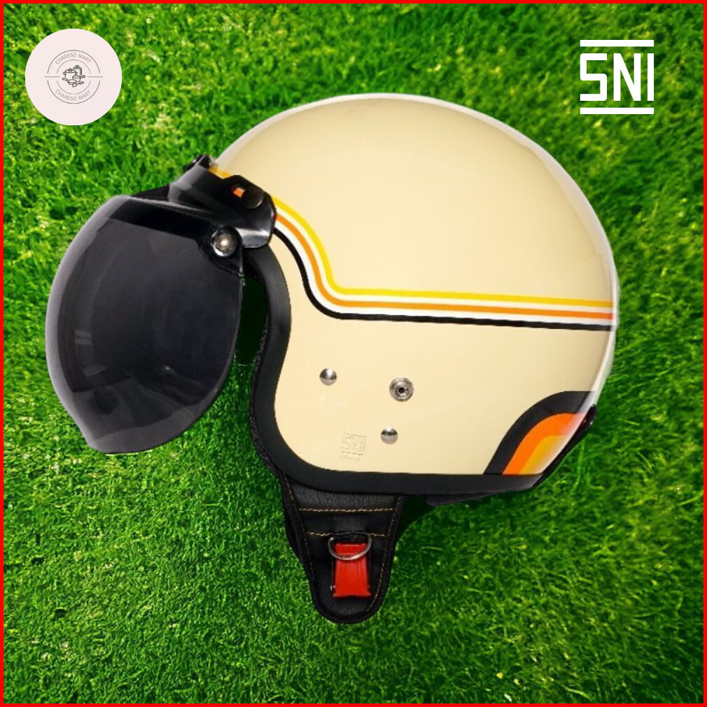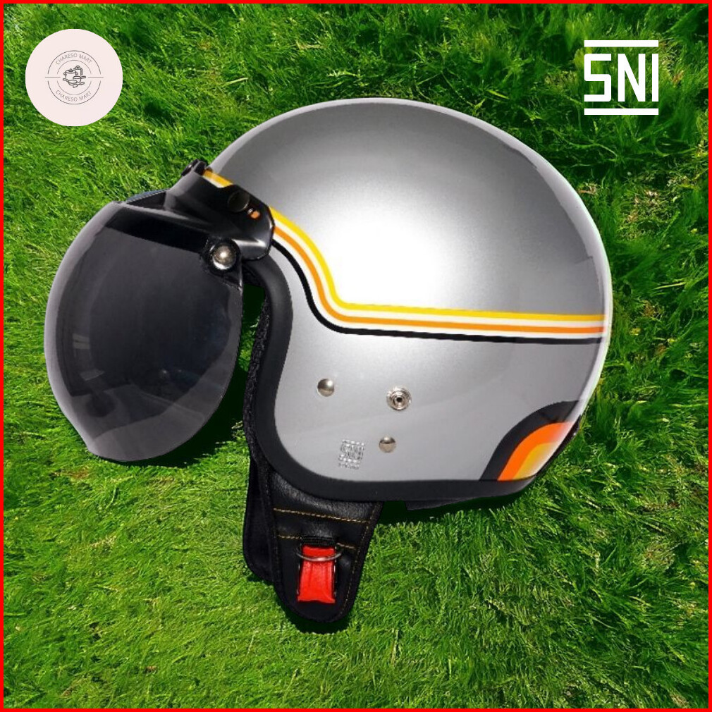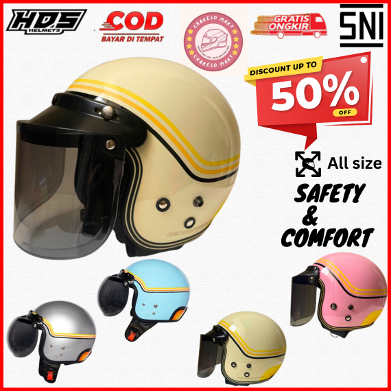 Helm Bogo Dewasa Half Face Classic Hds Helmet Motorcycle Sni Motif Chips Klasik