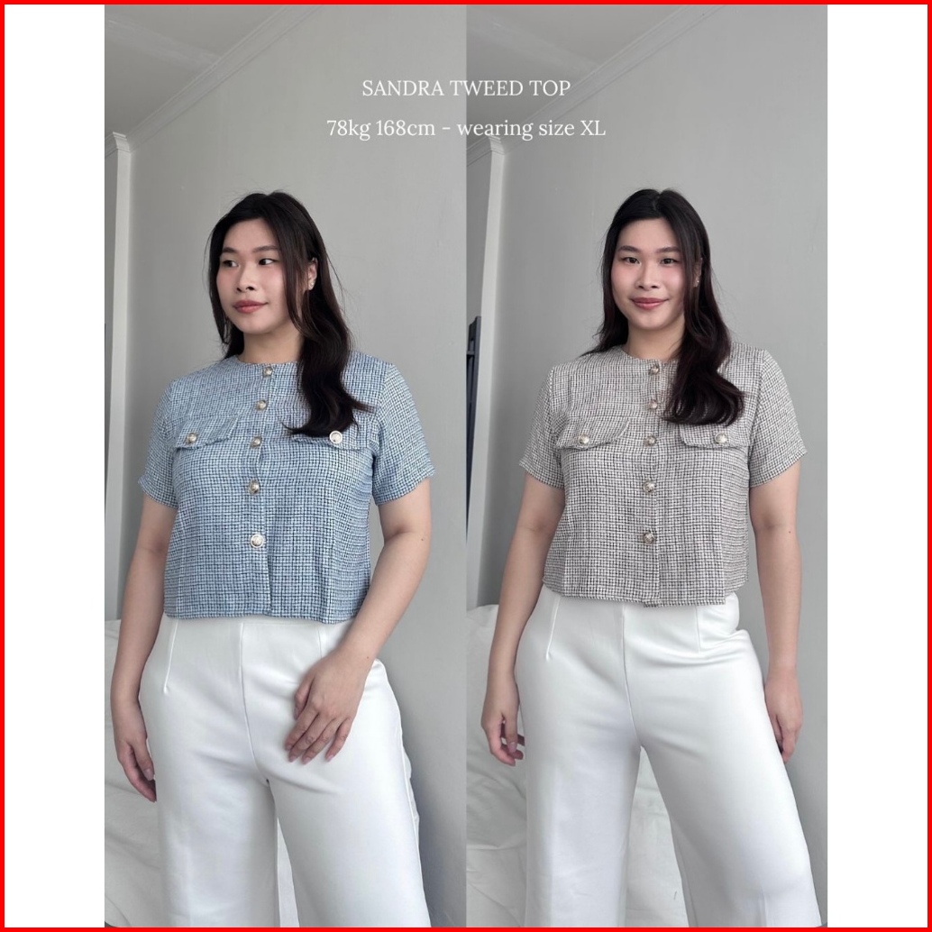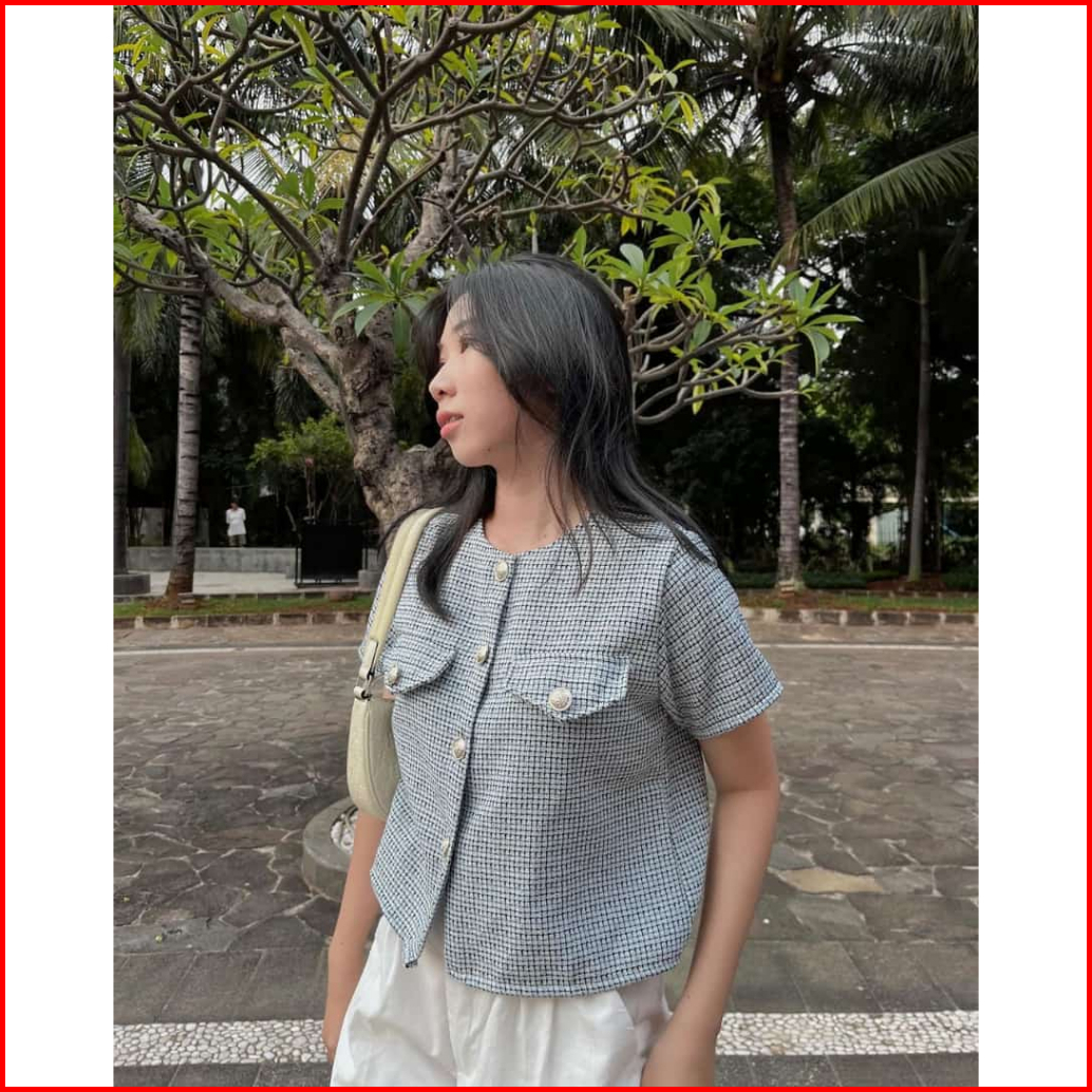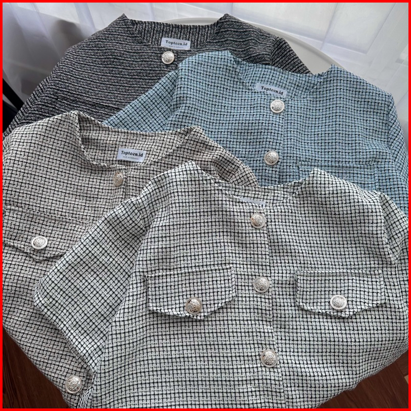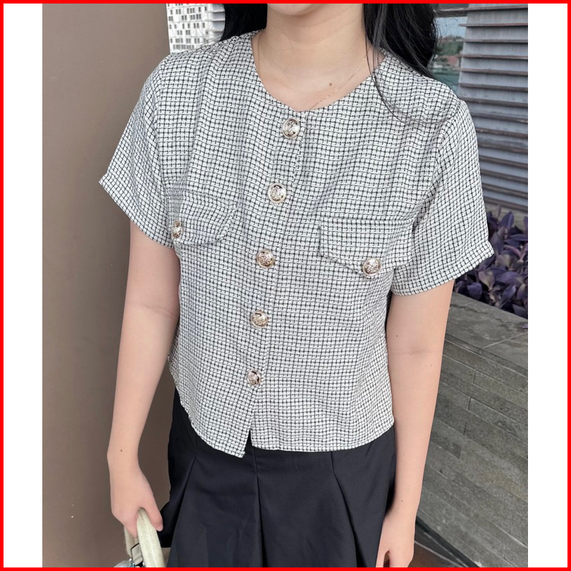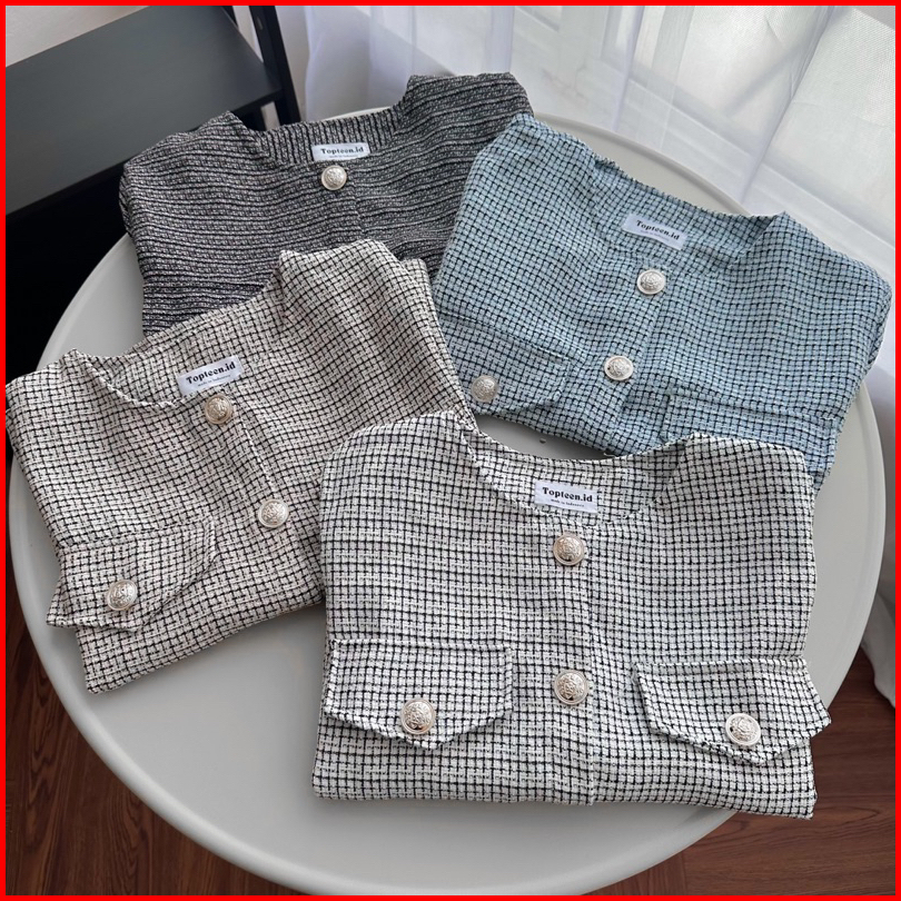 Topteen - Sandra Tweed Premium Shirt Kemeja Big Size Jumbo Xl Xxl