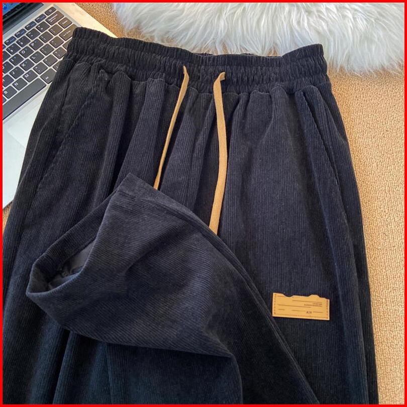 Yuruma Celana Panjang Olahraga Celana Kaki Lurus Pinggang Tinggi Korduroi Wanita