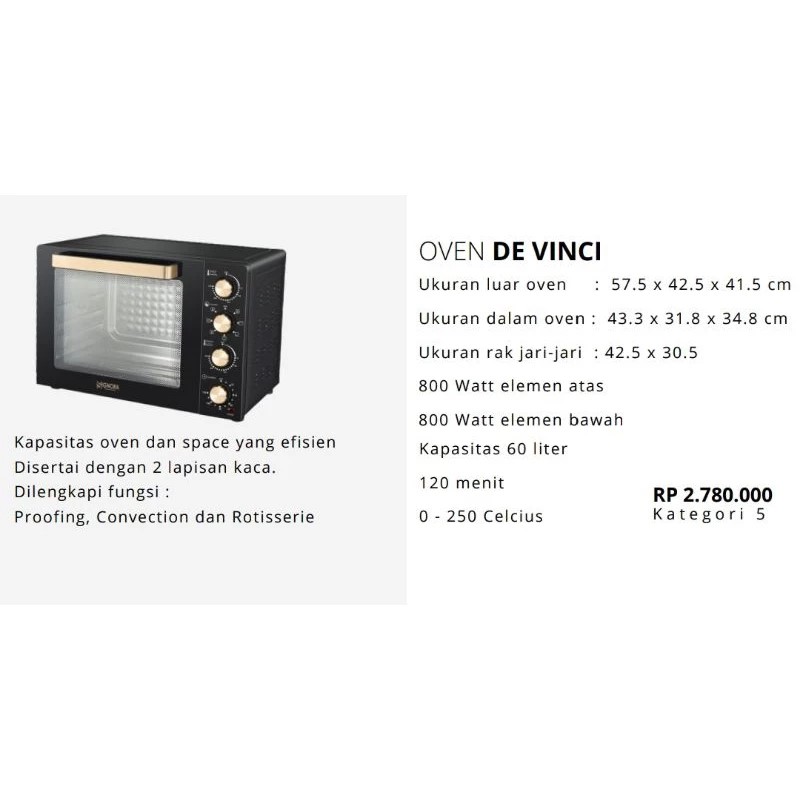 Oven DeVinci 60 Liter / Signora Oven DeVinci Berhadiah Langsung