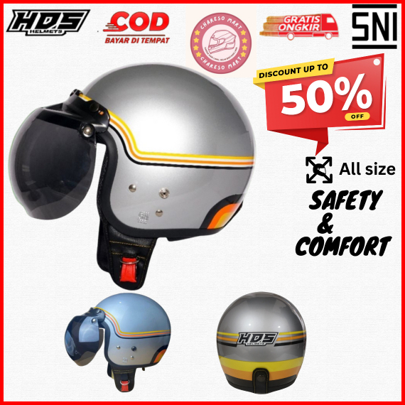 Hds Helm Bogo Dewasa Classic Sni Ori Full Leher Wanita Pria Pilihan Silver Chips