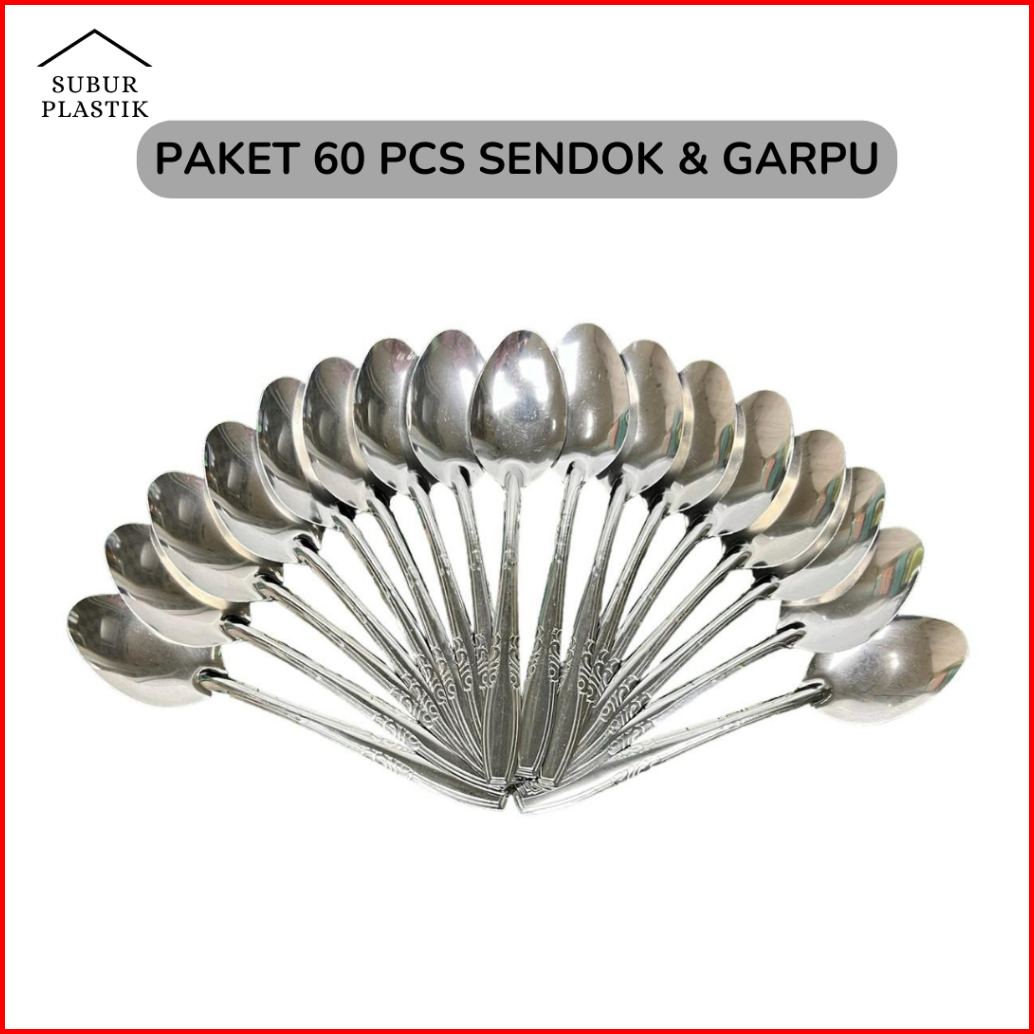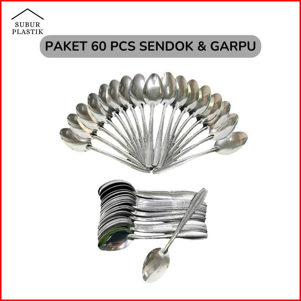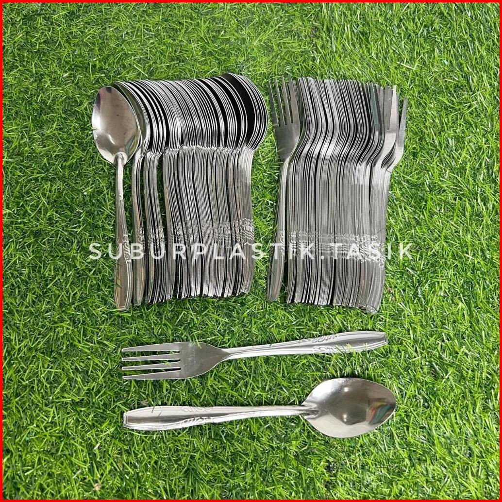 5 Lusin 60 Pcs Paket Sendok Garpu Makan Stainless Steel Paket Usaha Prasmanan Anti Karat Tebal