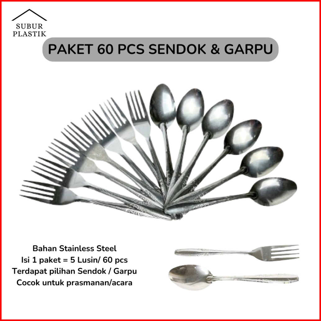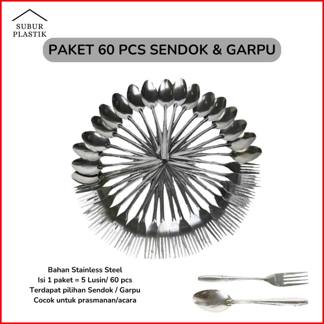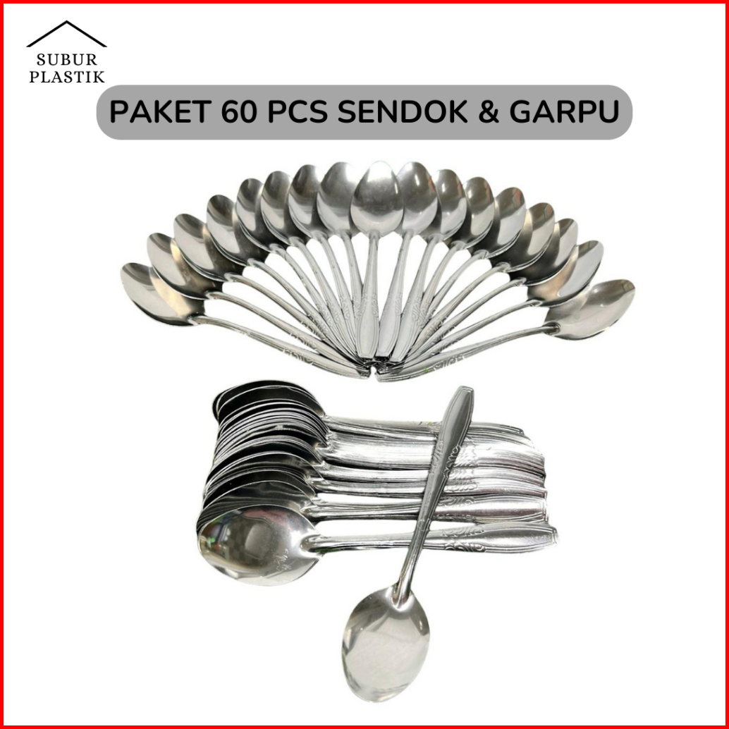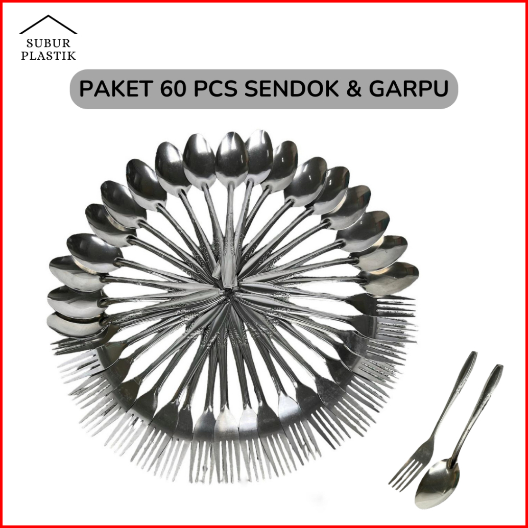 5 Lusin 60 Pcs Paket Sendok Garpu Makan Stainless Steel Paket Usaha Prasmanan Anti Karat Tebal