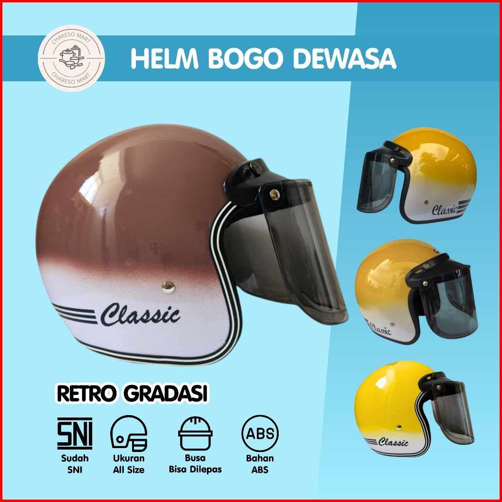 Helm Bogo Retro Dewasa Classic Hds Helmet Gradasi 2 Warna Hijab Wanita Pria
